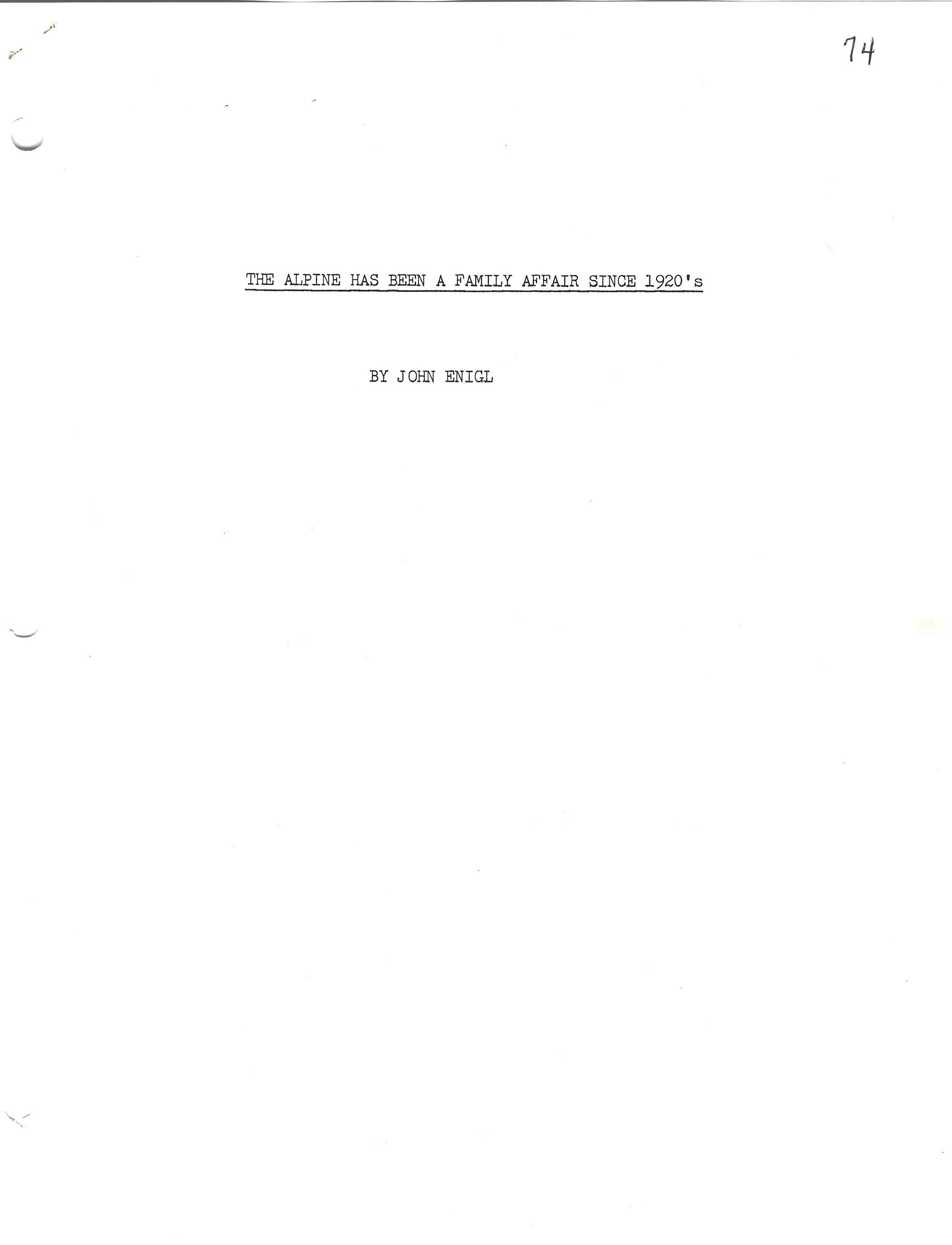 John Enigl relates the story of the Alpine Resort and its connection with the Bertschinger family.Cataloged By