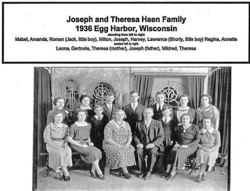 The Joseph and Theresa Haen family as photographed in Egg Harbor in 1936. Family members are listed in their entirety on the photograph.Photograph Details