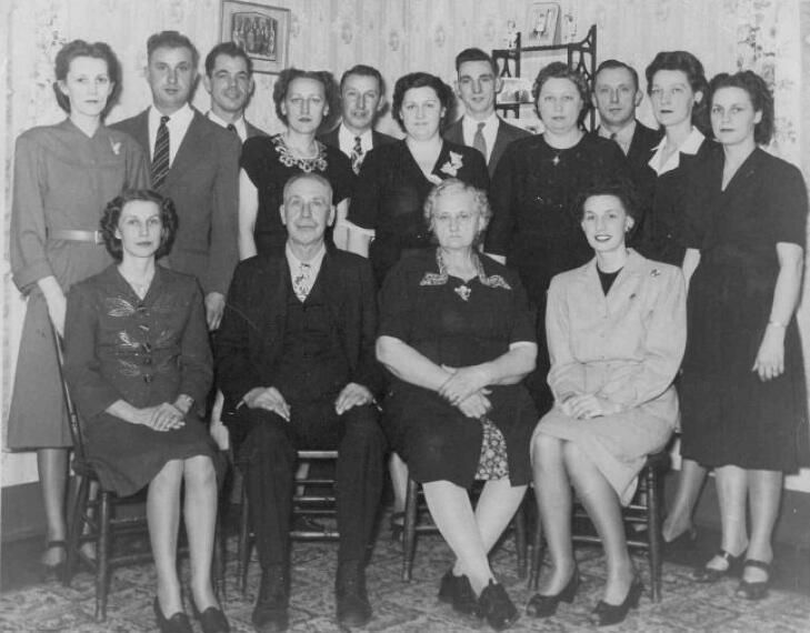 Joseph and Theresa Haen family as photographed in 1947. Names of other family members are unknown.Photograph Details
