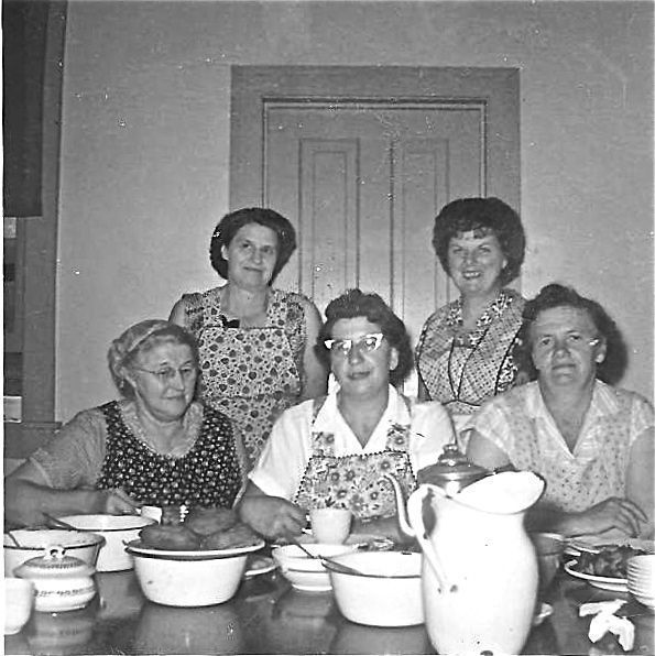 Lilly Volkman, Catherine Mueller, Goldie Dietrich - kitchen crew.