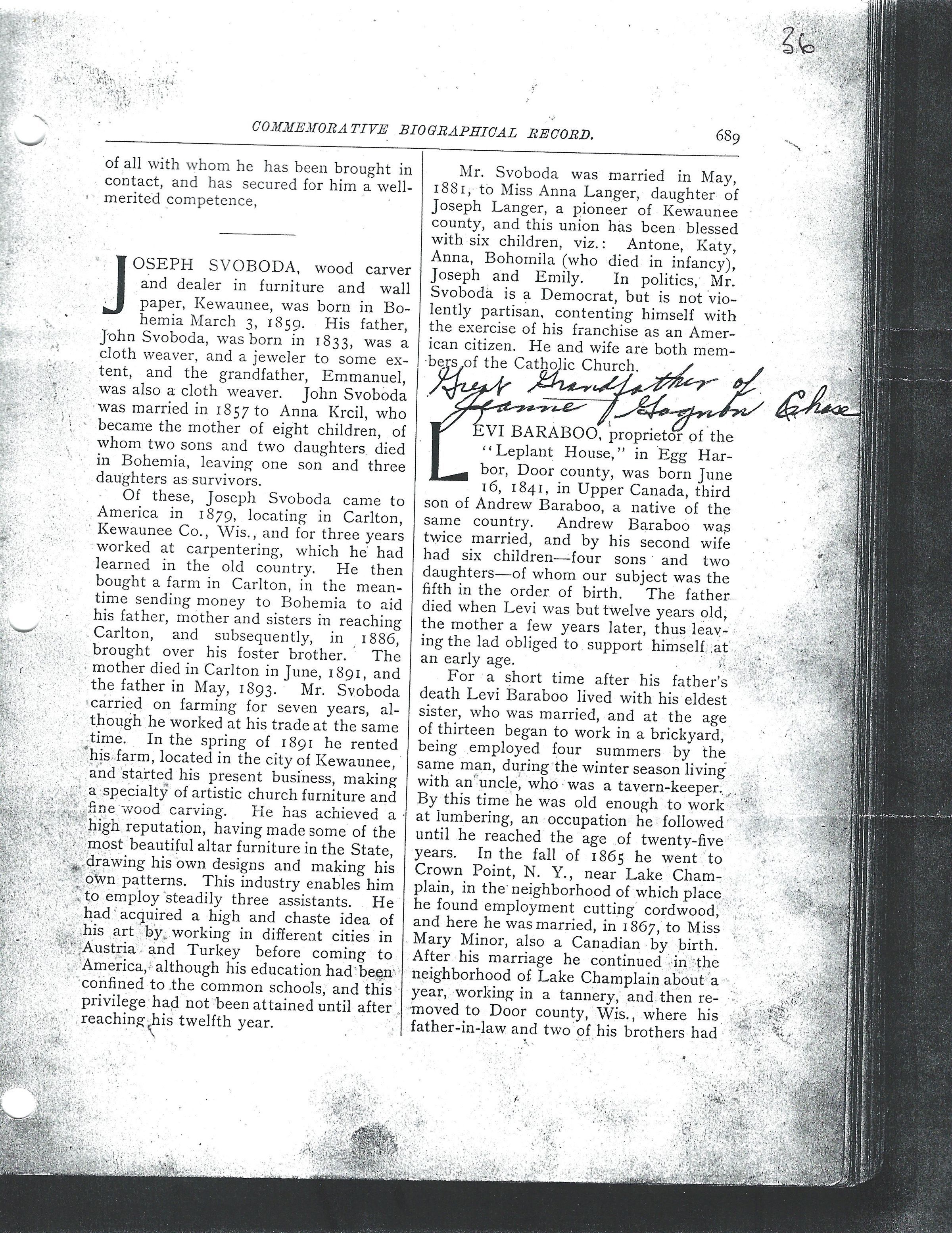 A short section from a publication detailing Levi Baraboo's life.Cataloged By