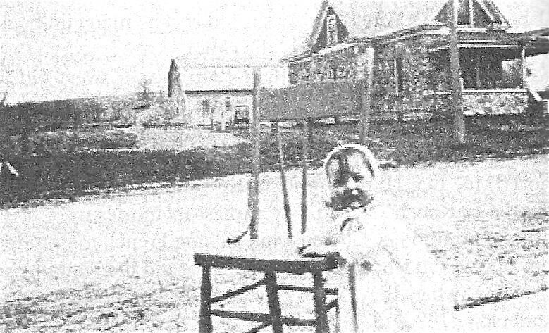 Levi Baraboo Home in 1920s. Demolished in 1988 for construction of the Mueller Bros. mini-mart gas station, property now a condominium located at the downtown intersection of the Village. Unknown baby.Photograph Details