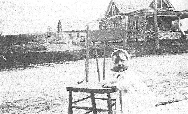 Levi Baraboo's house - 1920s. House was taken down. Barn still stands behind Mueller's gas station. Baby in foreground.Cataloged By