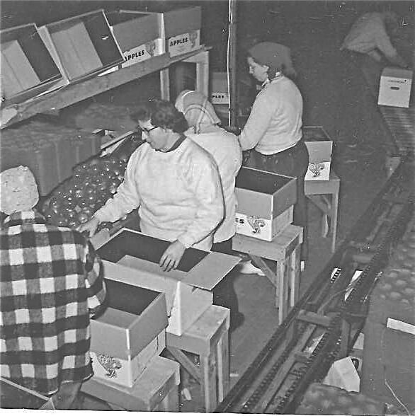 Women packing apples at Horseshoe Bay Farms. Unknown date.Photograph Details