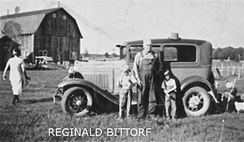 Reginald Bittoff near car on farm. Unknown children and woman in distance. Unknown date.Photograph Details
