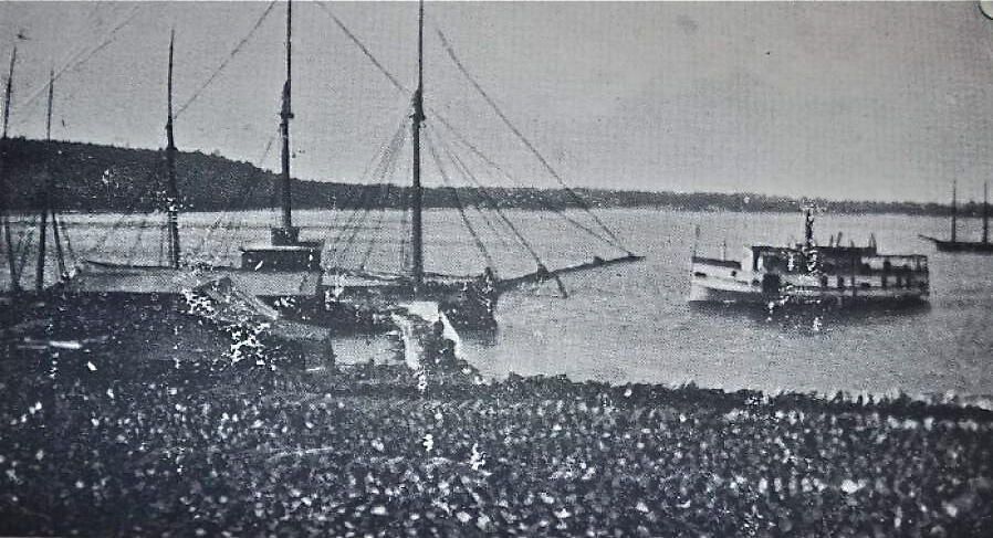 Working ships in Egg Harbor, the schooner is most likely Jorns' Elizabeth that Jorns used for trading purposes. Unknown date for photo.Photograph Details