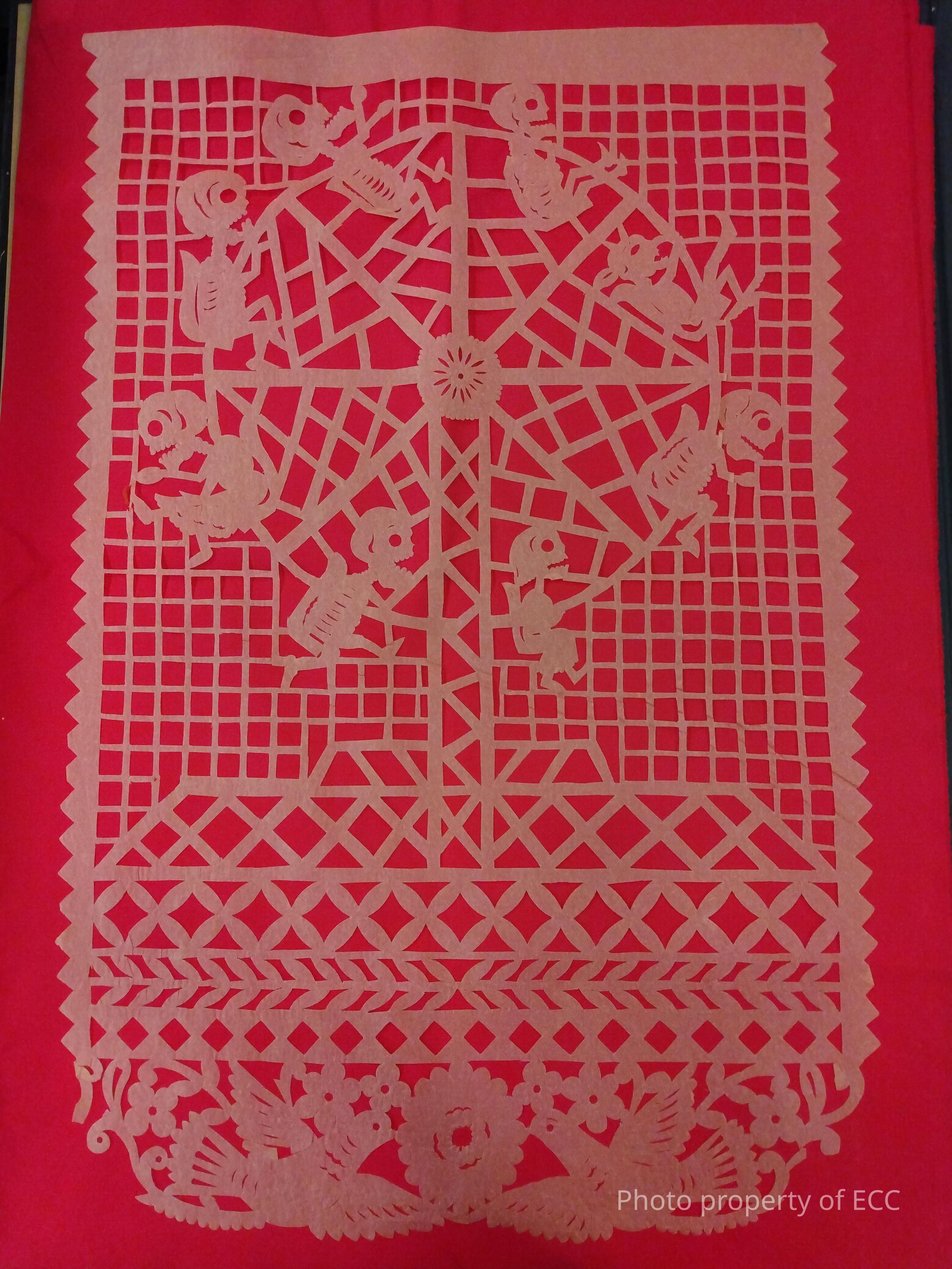 Orange Papel Picado- Skeleton People on a WheelEntry/Object ID