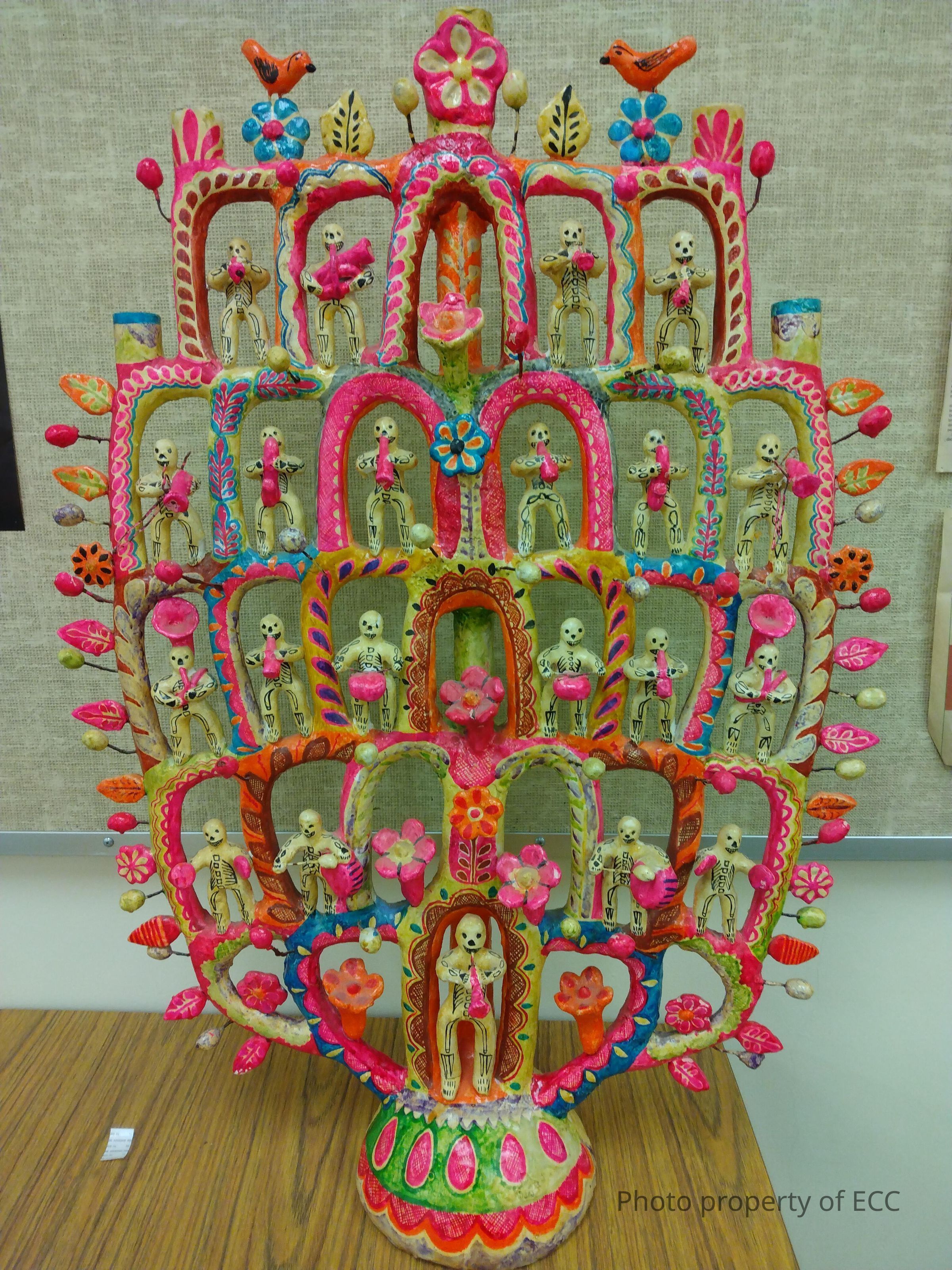 Sculpture depicts the tree of life. The tree of life is important in Mexican culture as the idea of the tree of life displays the celebration of life and death.Collection