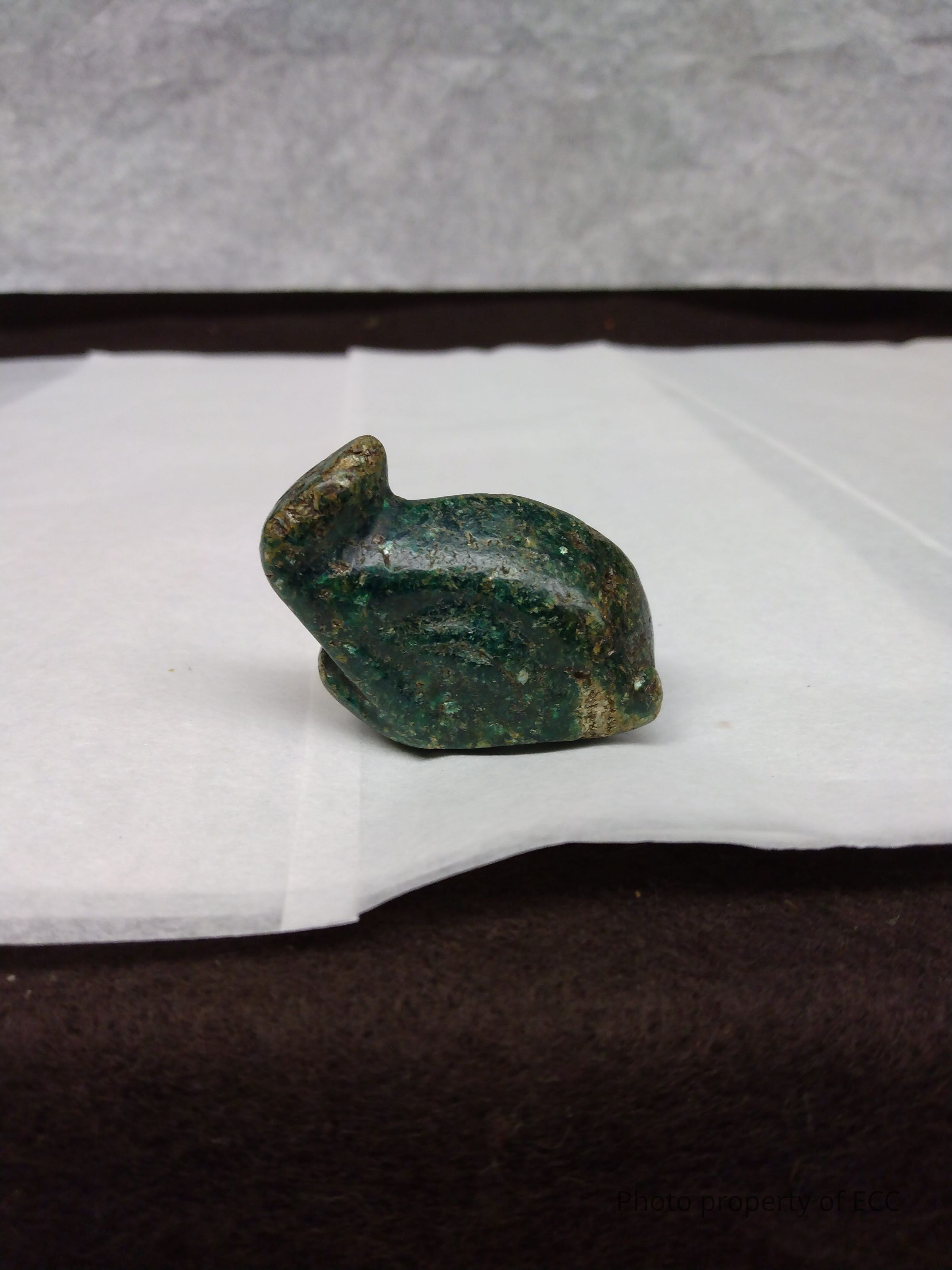 Rock shaped into an animal like object. Possibly made of adventurine (green quartz).Collection