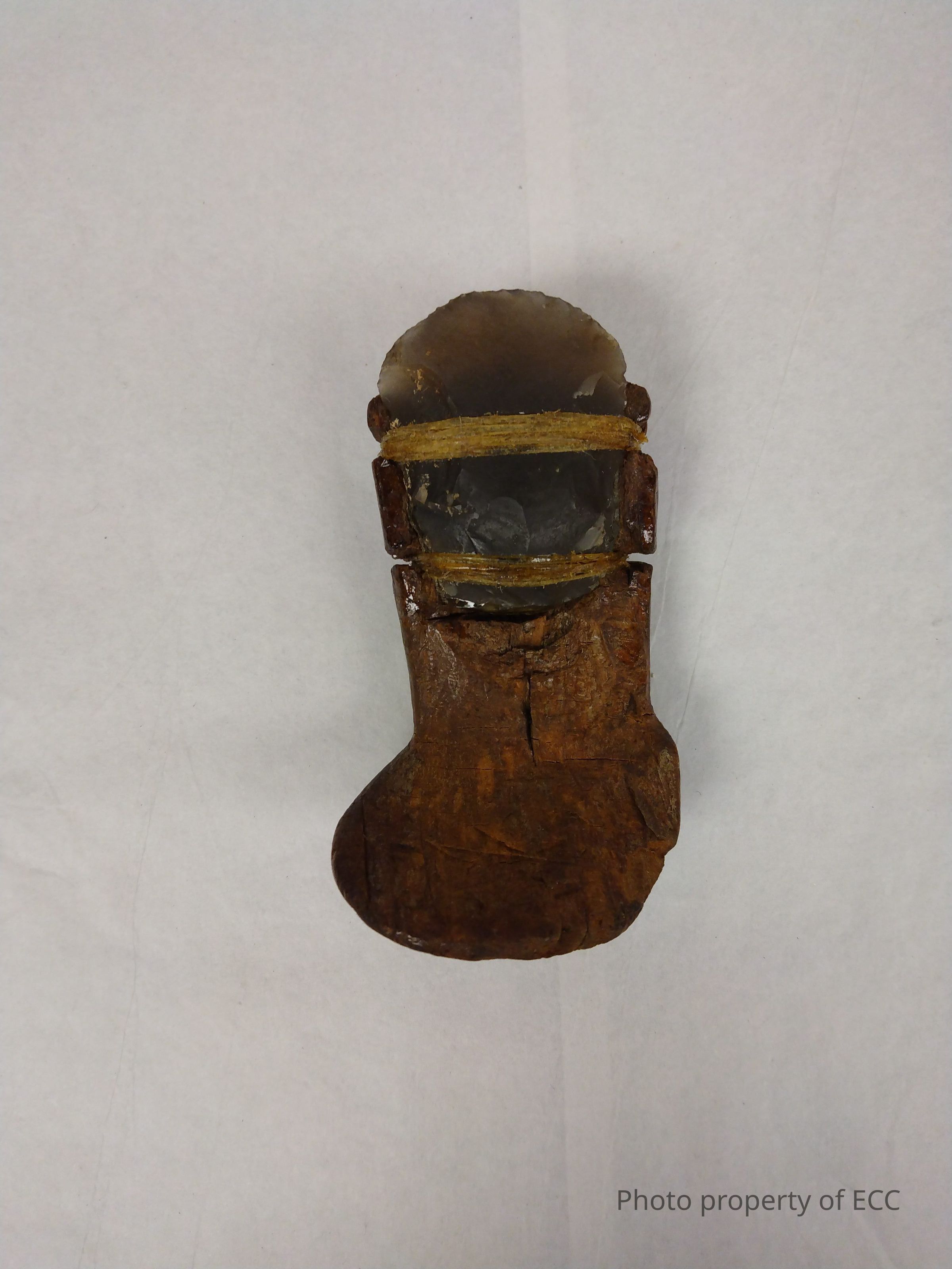 Chert scraper with a wooden handle. 1700-1800 C.E.