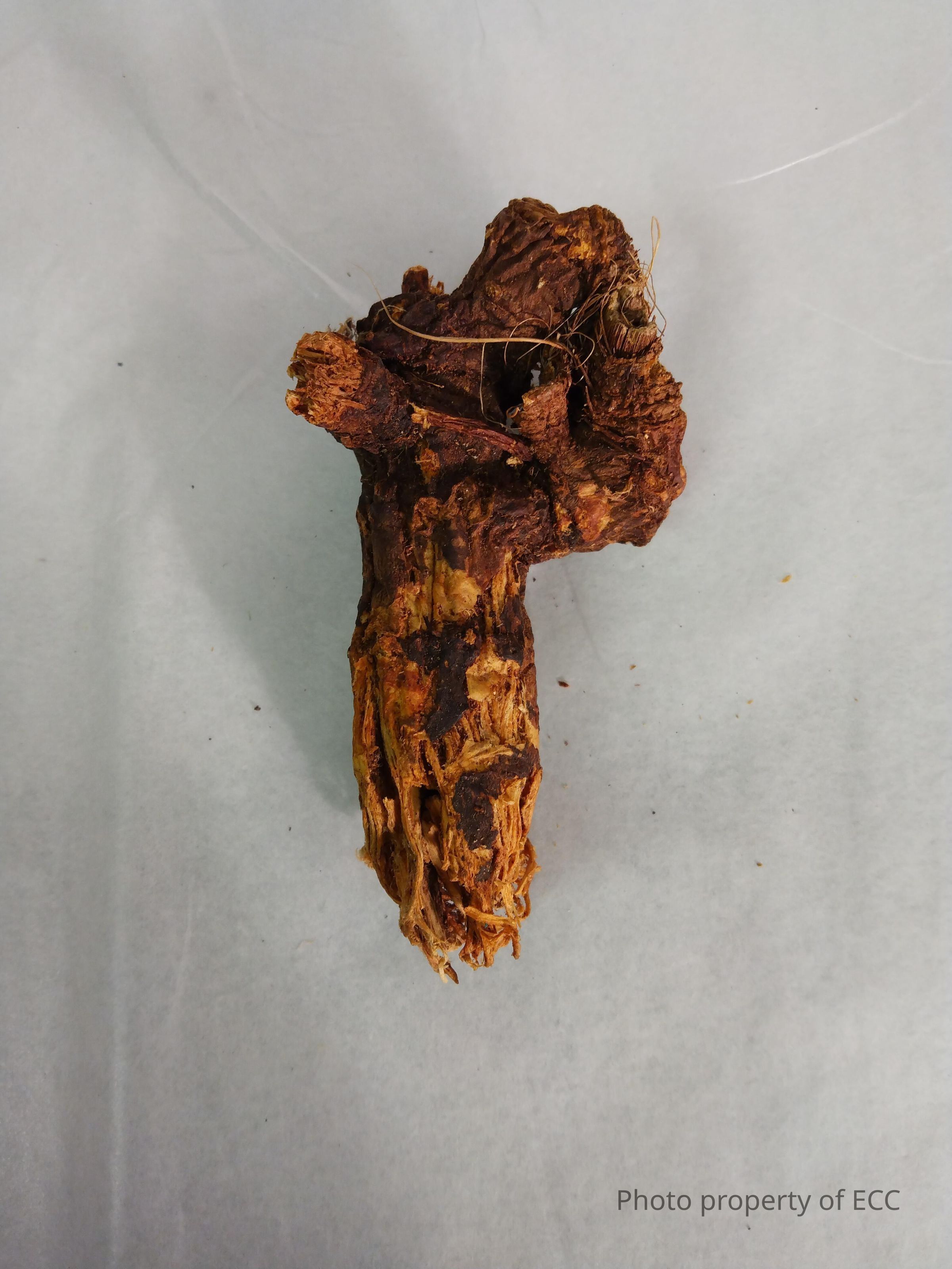 A dried piece of herb from a copal tree. This object was used for a spiritual healing exhibit. The object was donated in a plastic bag.