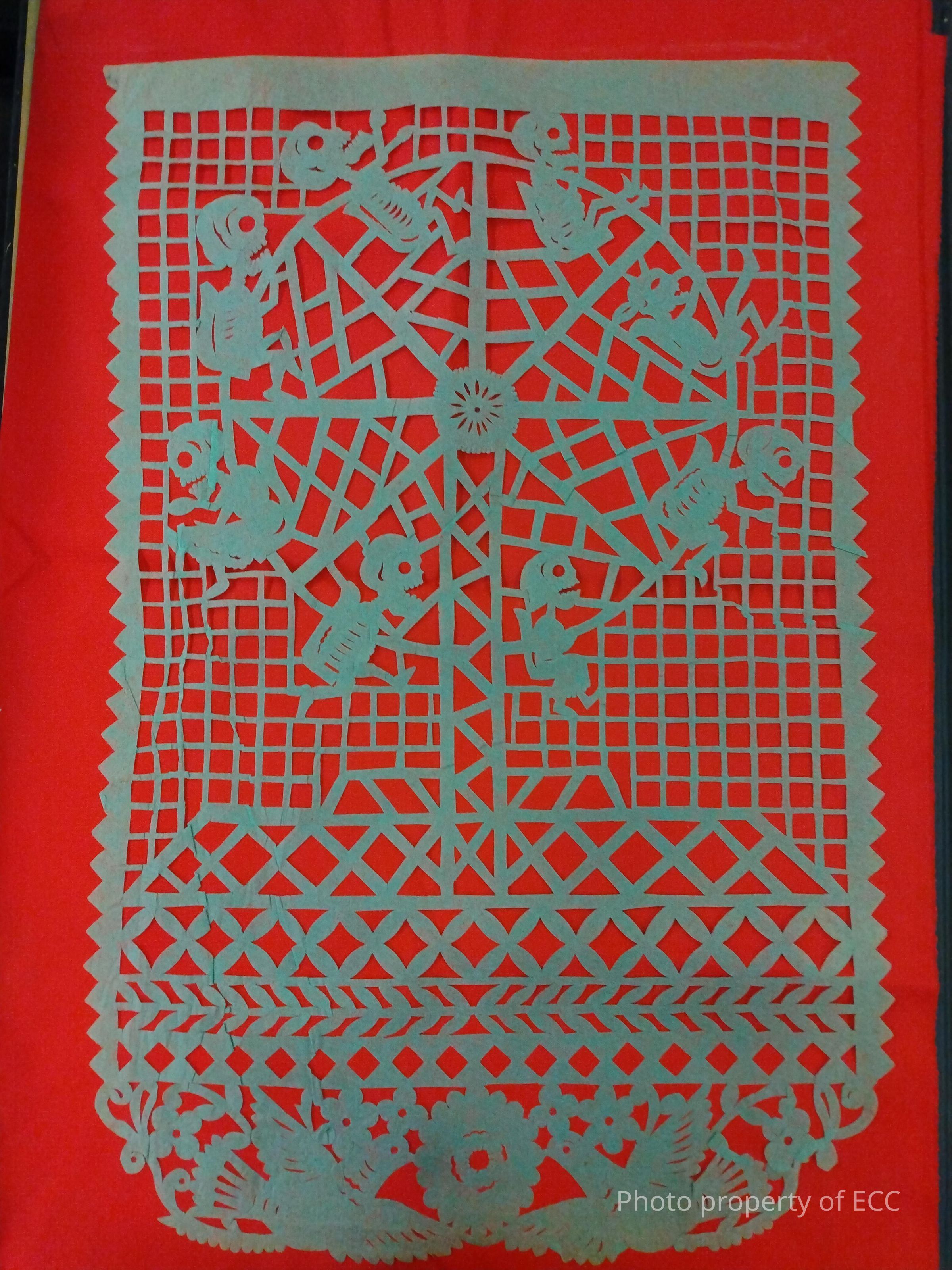 Altars have certain criteria to fulfill in terms of the elements being placed on it. There needs to be a representation of the 4 elements (fire, earth, water, air/wind). The elements represent the journey made by the spirits every year to the living world. Papel picado (perforated paper) is the element that represents air. The images seen on papel picado vary. See links below for more information.Collection