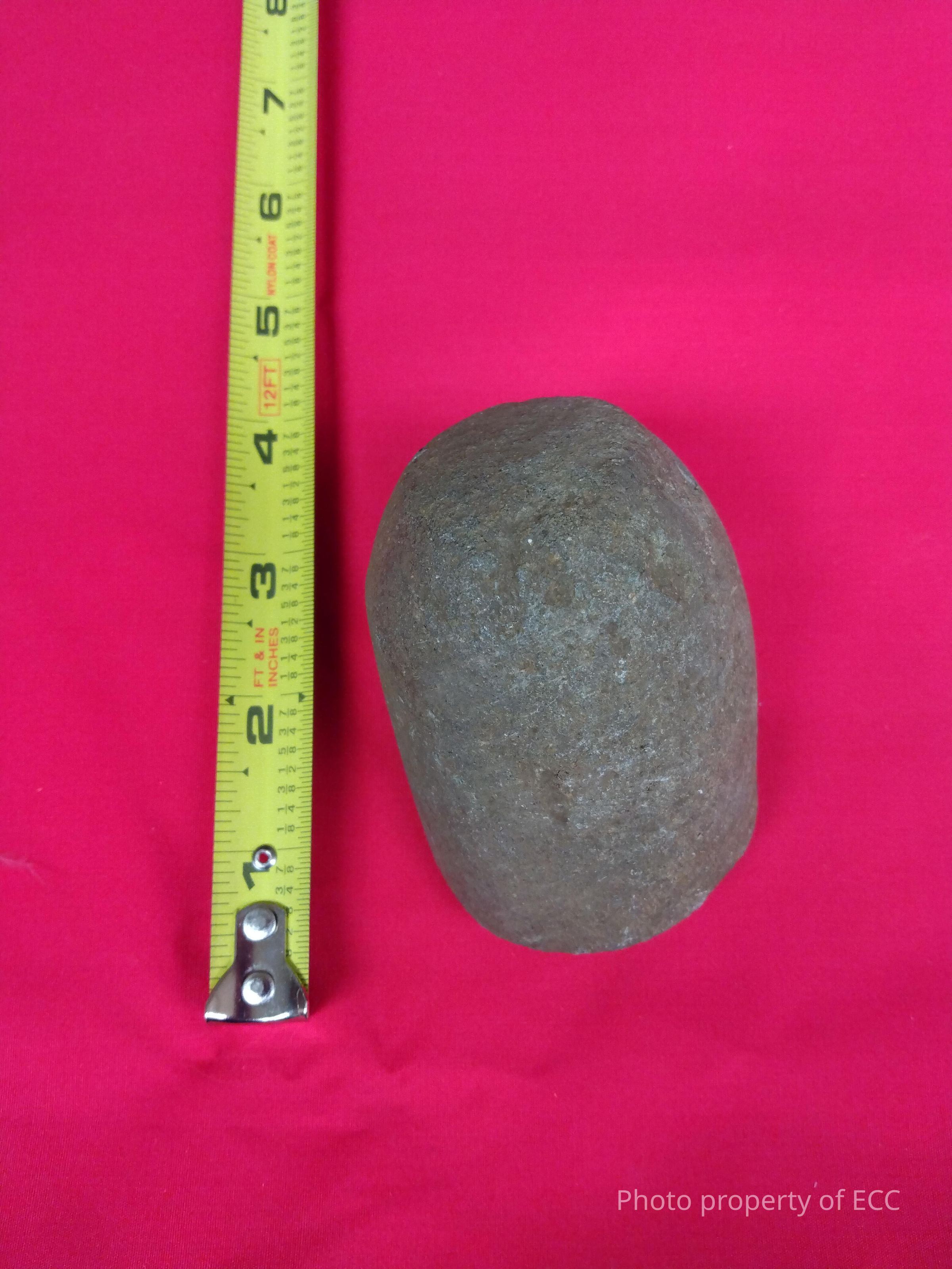 Cylindrical Basalt pestle. The grinding end is flat with well worn shoulders,Context