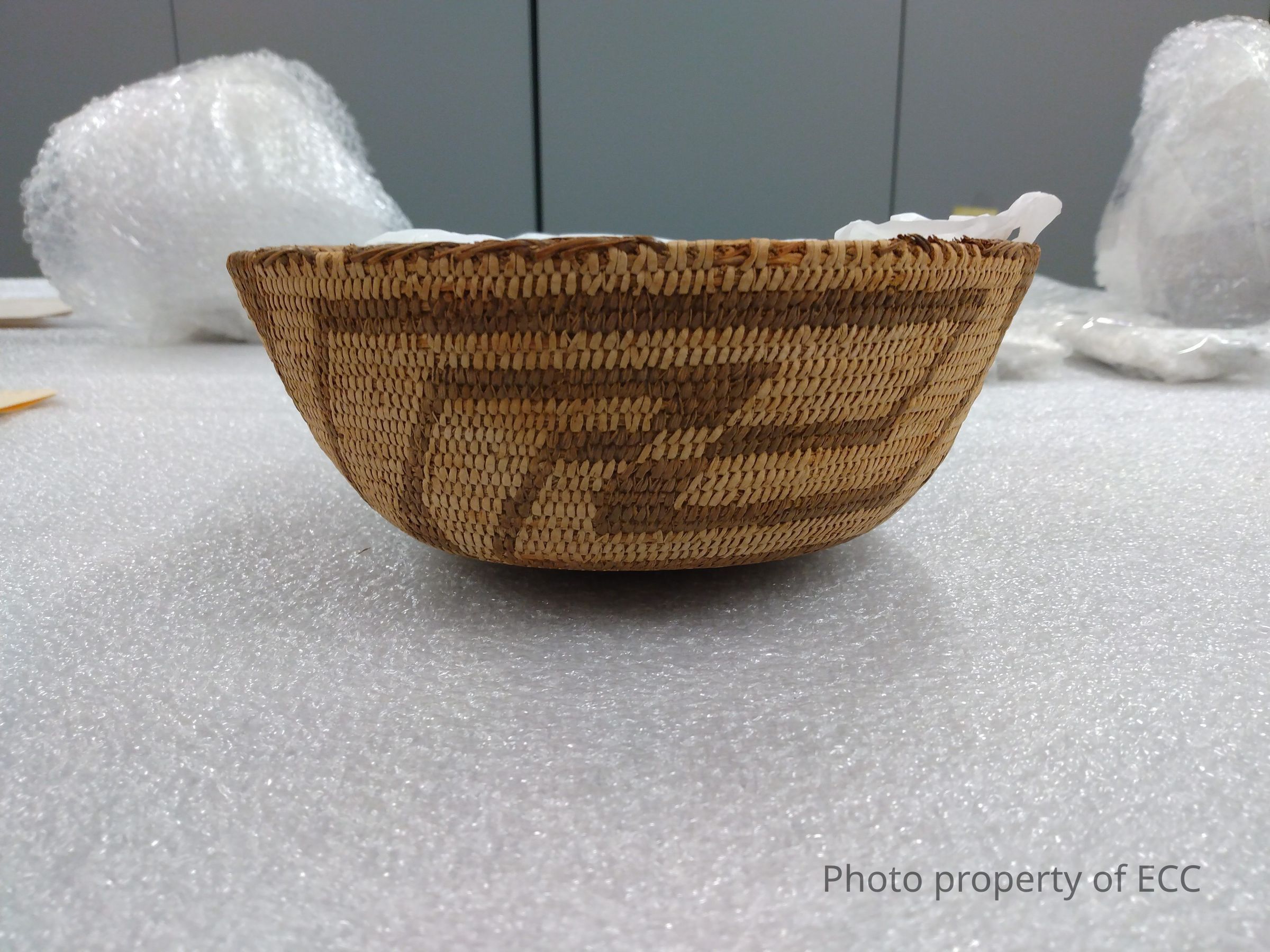 This basket was found on display in the museum in the Prehistoric Cultures of the Americas exhibit. It had no visible catalog number, and all information here was taken from its display card in the display case.