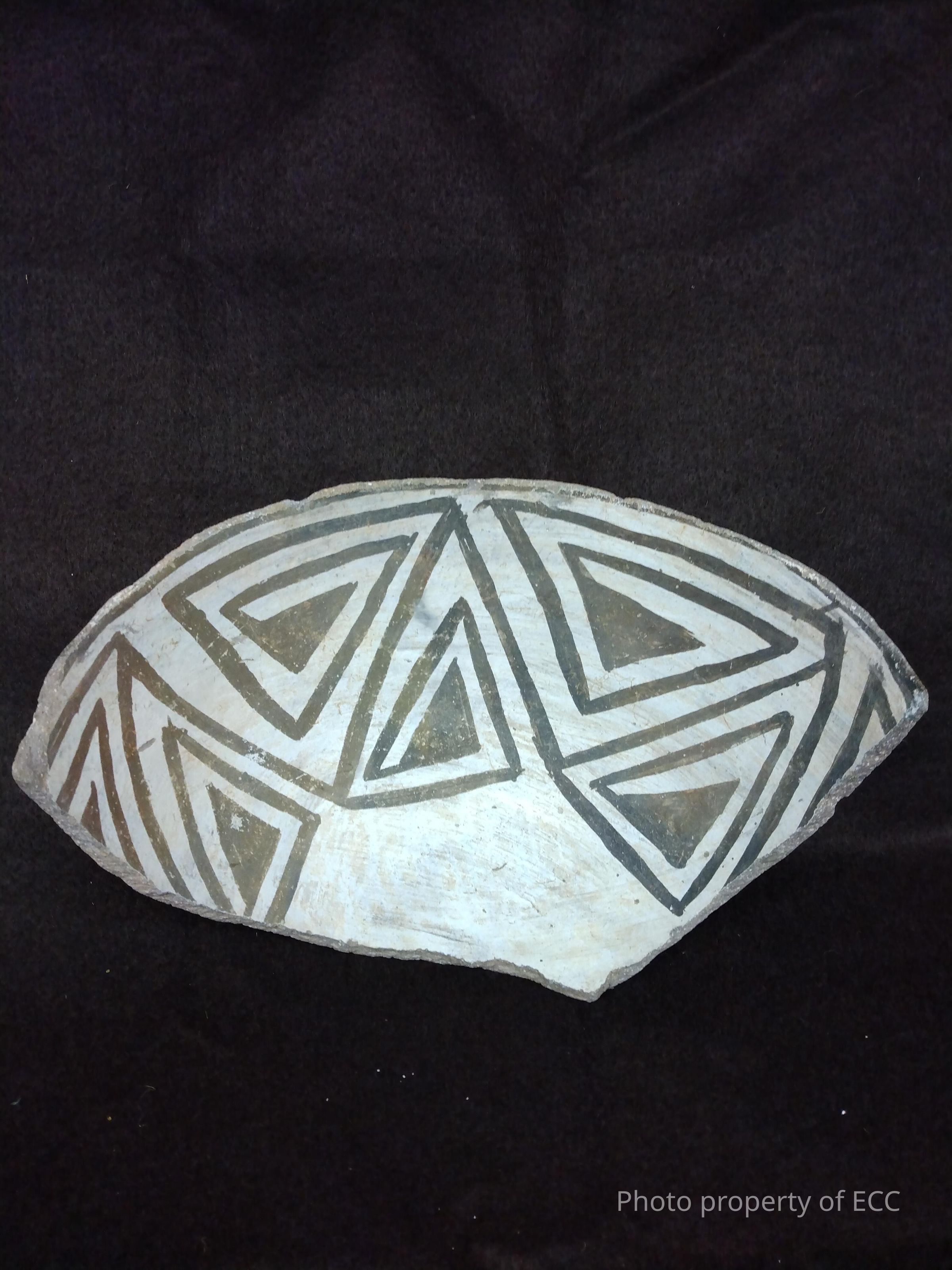 Pot shard white with black geometric design on interior.Collection