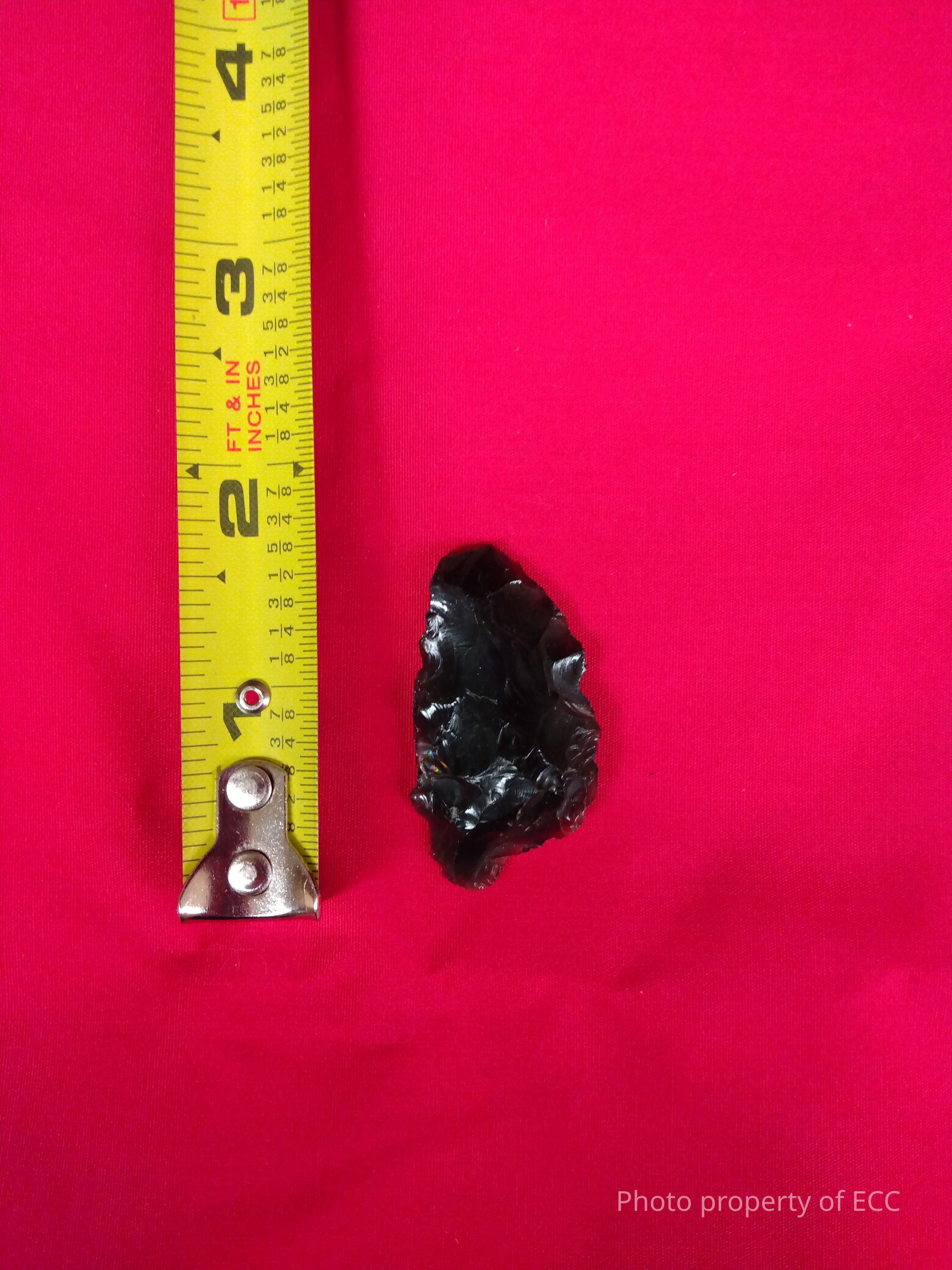 Obsidian projectile point. Appears to be unfinished.Collection