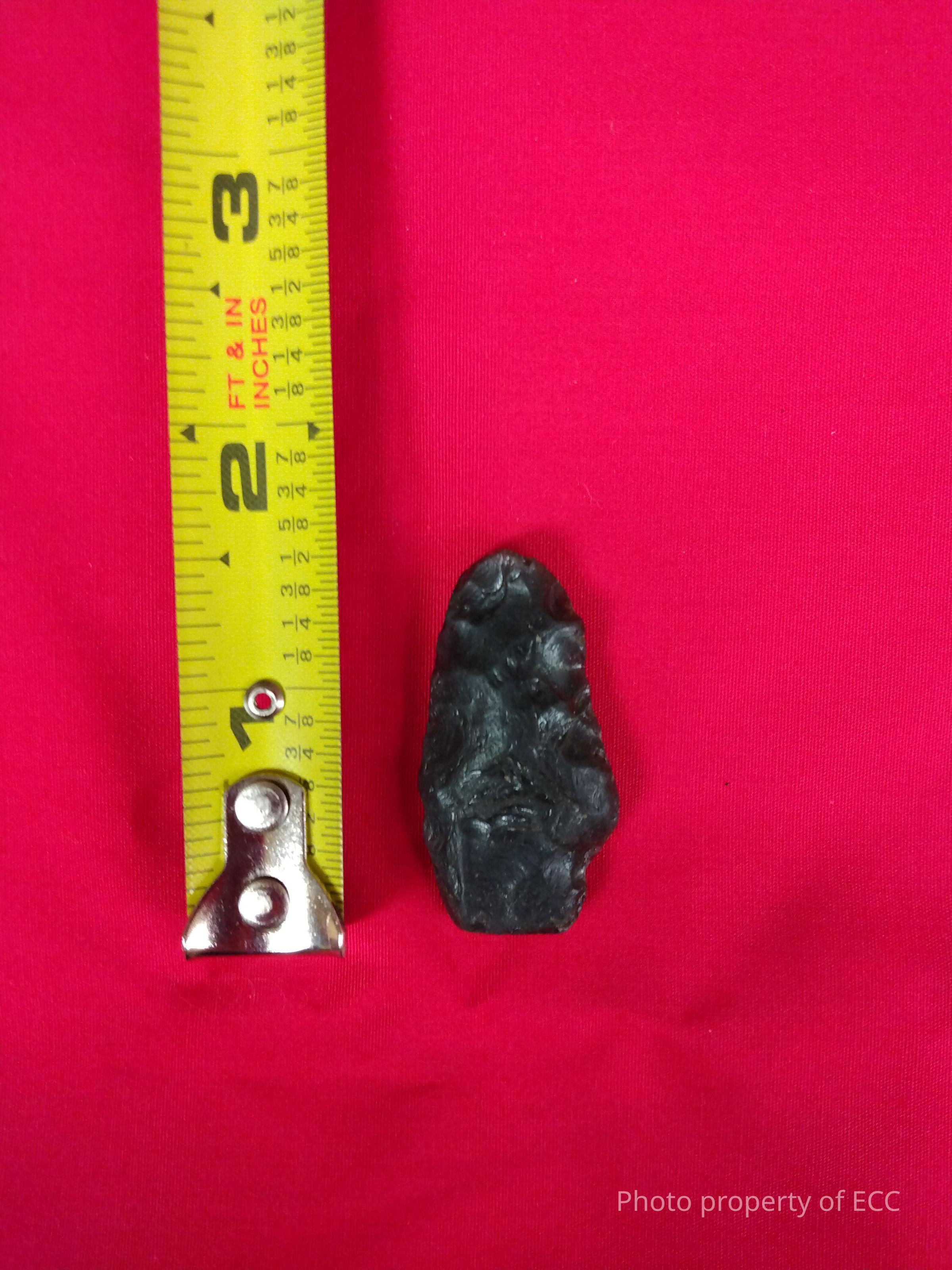 Leaf shaped obsidian projectile point with a flat base.Collection
