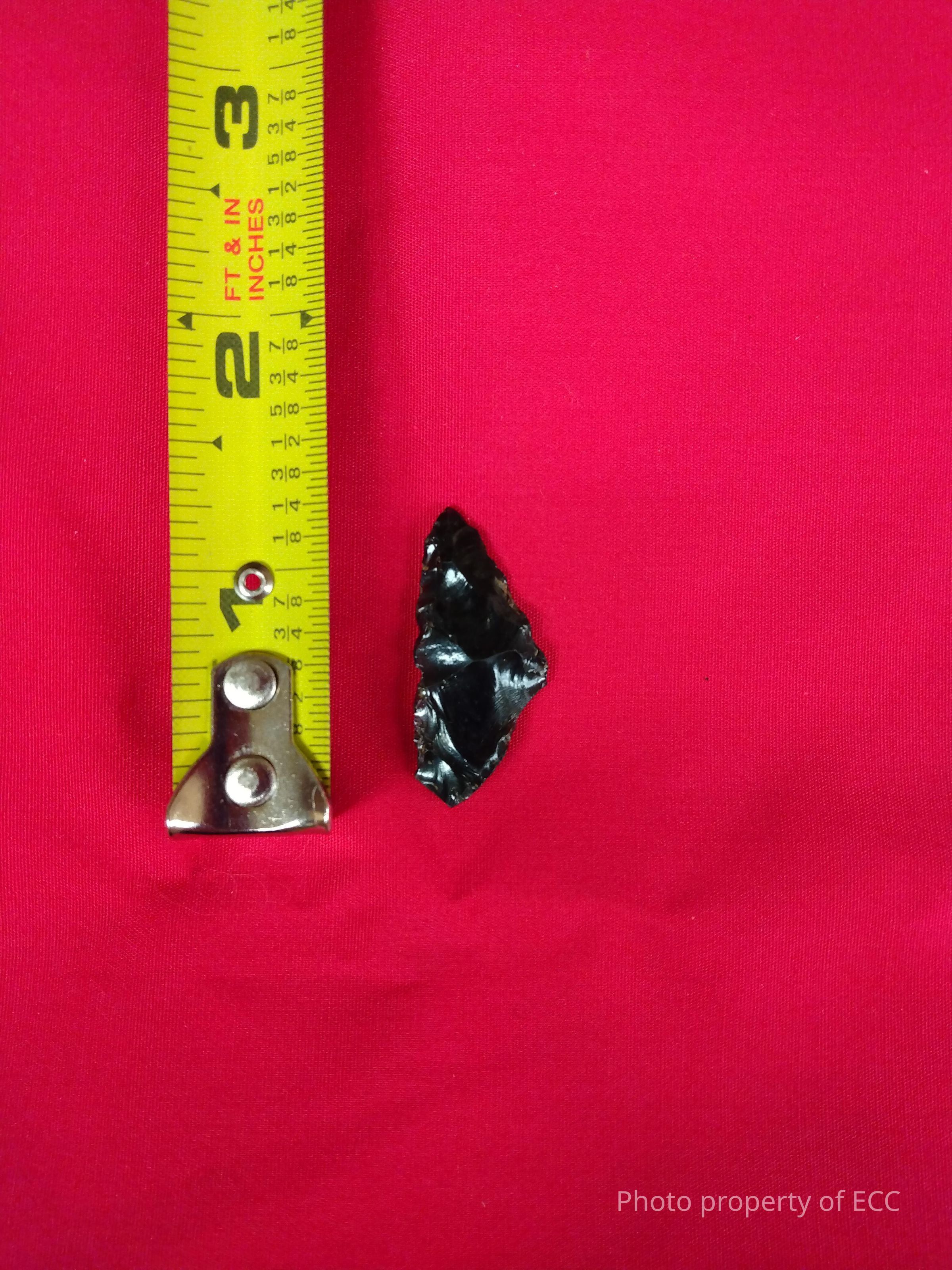 Obsidian projectile point. Appears to be unfinished.Collection