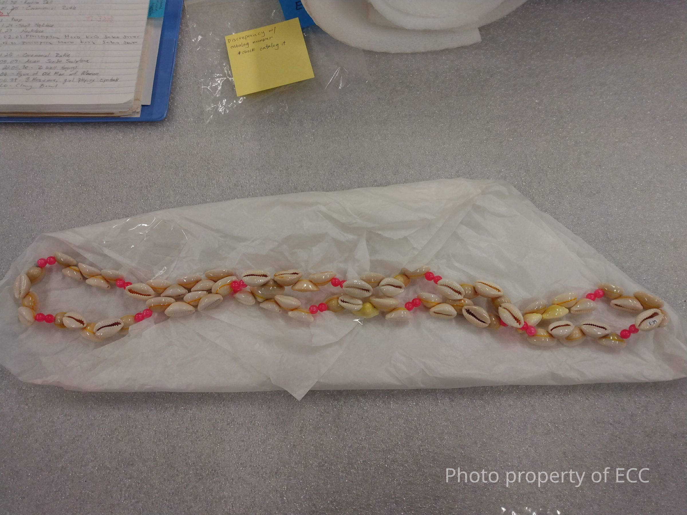 This object was mis-cataloged as E-39. Upon investigation it was discovered that its number is actually E-40. The original number, E-39, is still labled on one of the shells, near the new number tag.