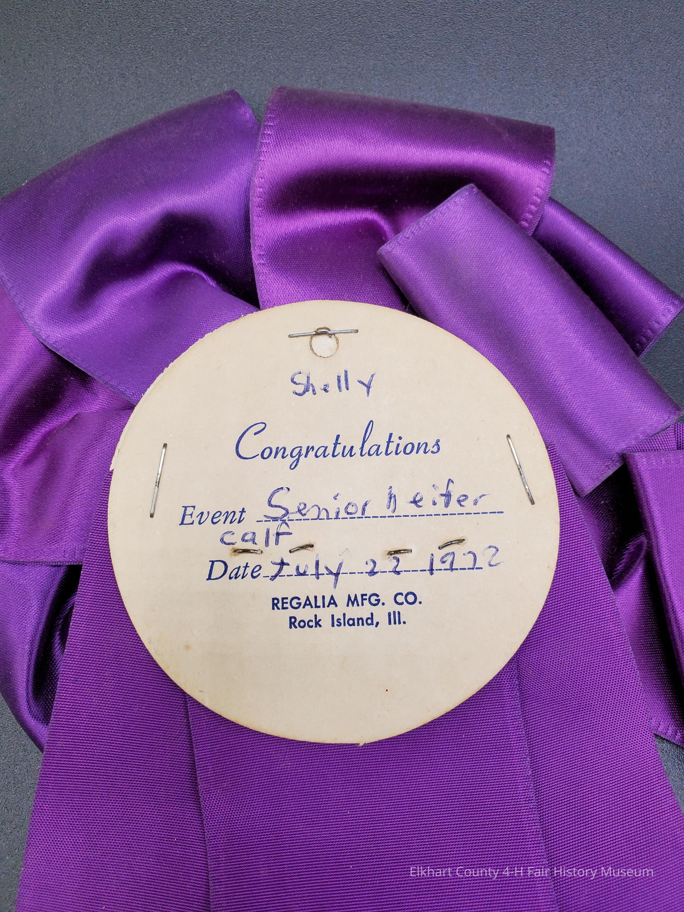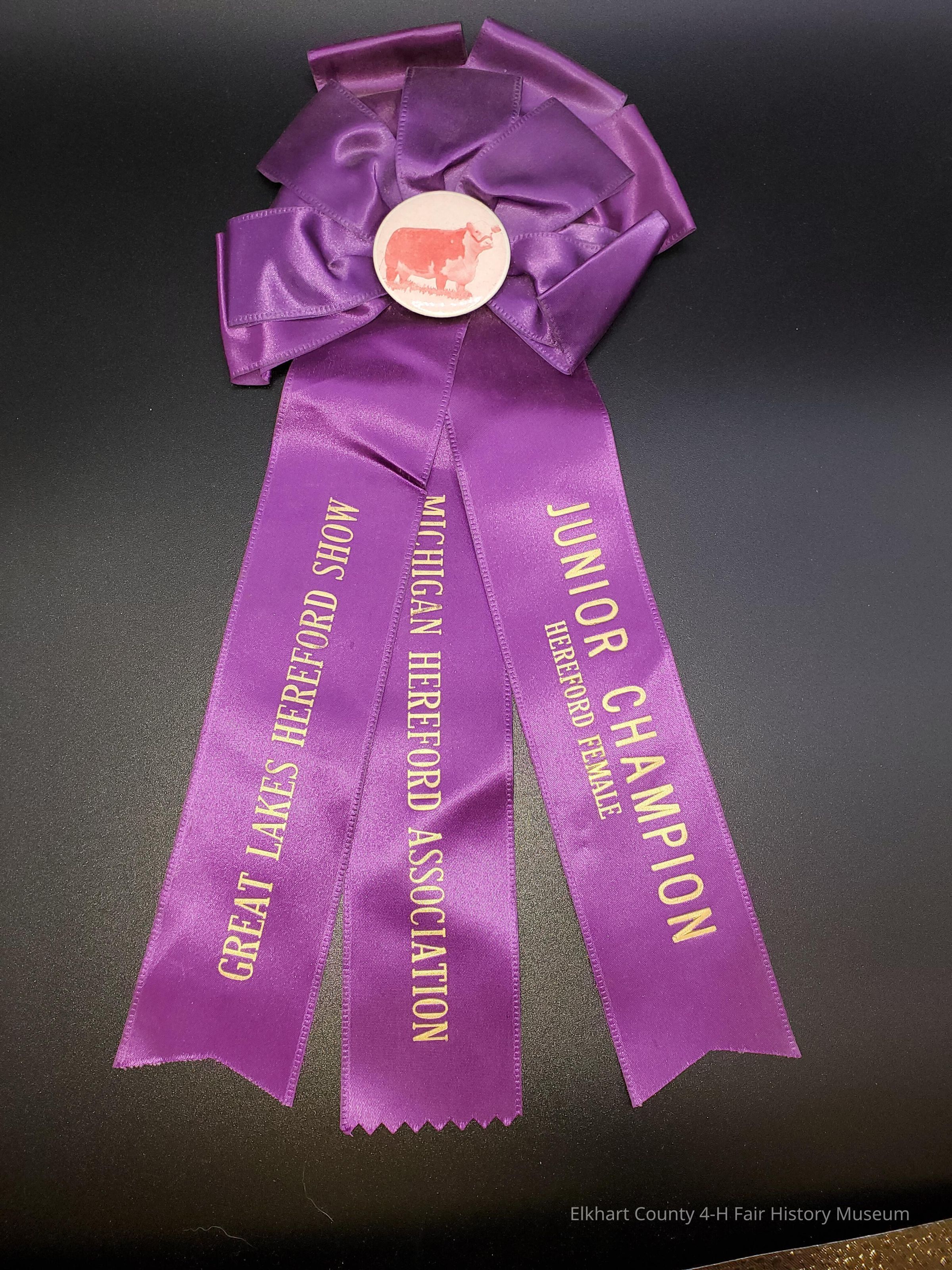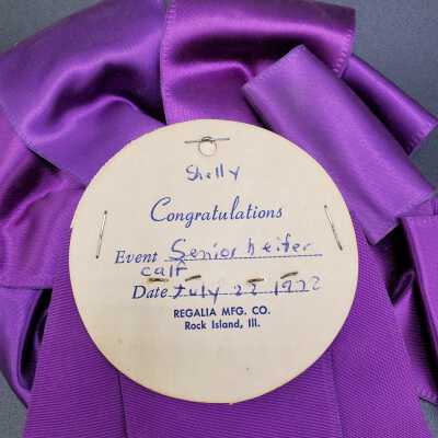 Great Lakes Hereford show Junior champion. 1972. Senior hefford calf July 22 1972 . The Only Name on the ribbon is Shelly.