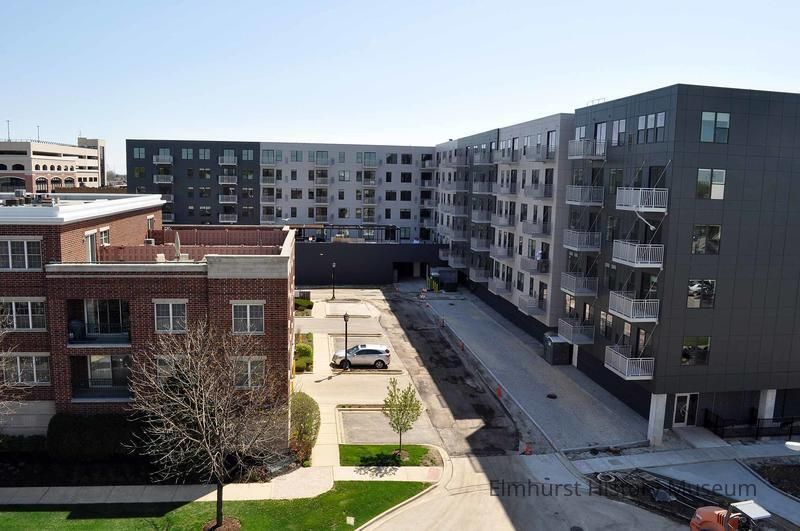 View from parking deck at 175 W. First Street looking east towards the back of the Marke Luxury Apartment complex at 100 N. Addison.