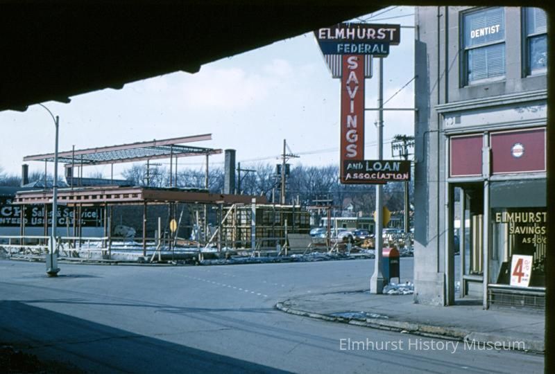 Construction across the street from Elmhurst Federal Savings and Loan at 100 N. Addison Avenue. Elmhurst Federal Savings and Loan moved to that location when construction was completed.Photograph Details