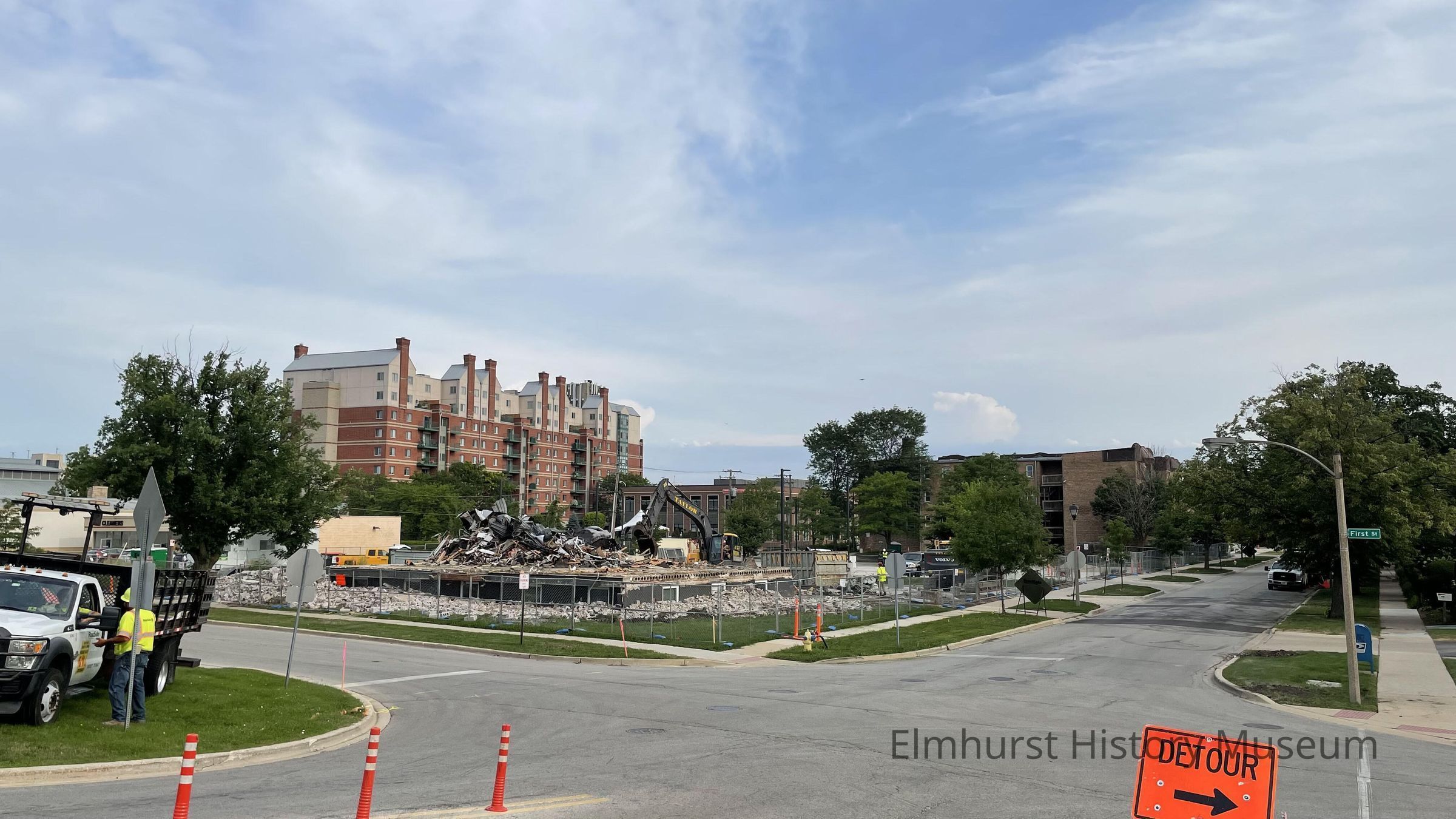Demolition of the former Maher Publications building at 102 Haven Road, looking northwest from Haven Road and E. First Street.Photograph Details