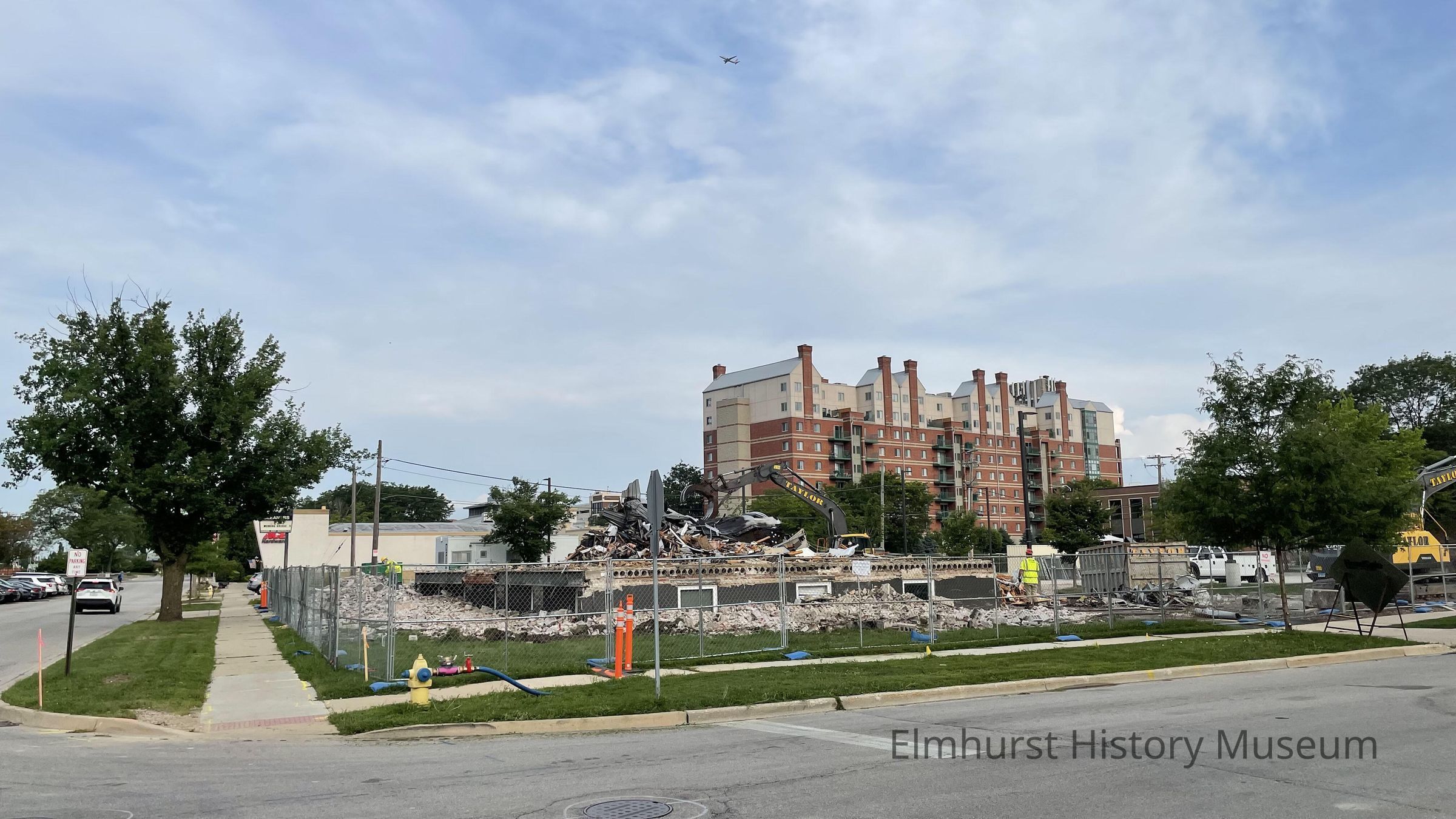 Demolition of the former Maher Publications building at 102 Haven Road, looking west from Haven Road and E. First Street.Photograph Details