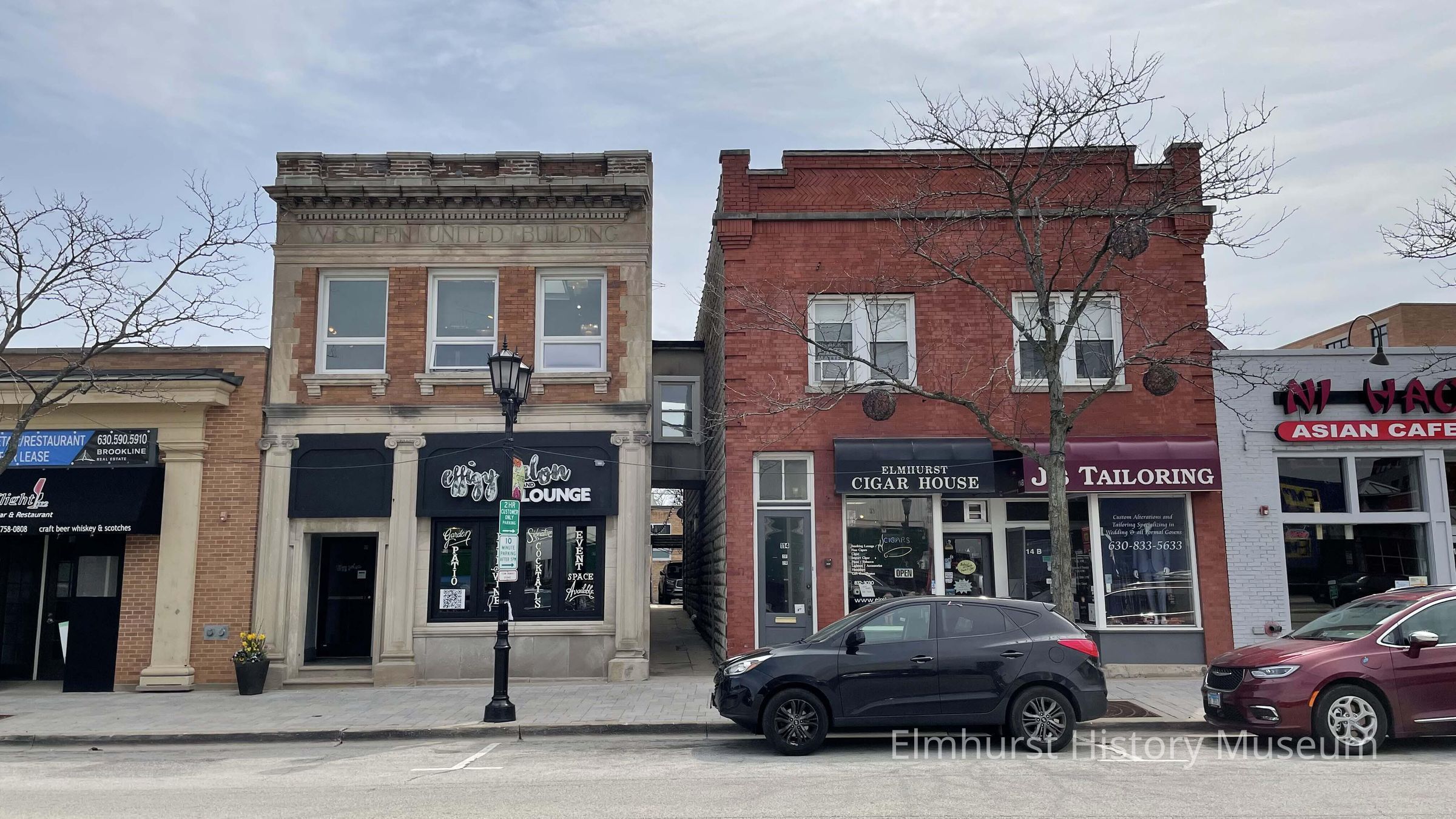 Effigy Salon and Lounge at 112 W. Park Avenue, Elmhurst Cigar House and J's Tailoring at 114 W. Park Avenue.Photograph Details