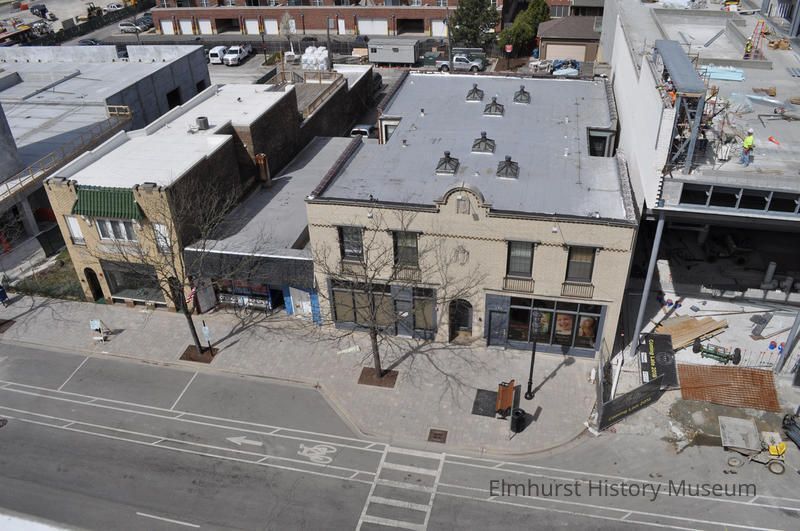 Commercial buildings on N. Addison Avenue, viewed from the Addison Parking Deck. 130-132 N. Addison was once City Hall.Photograph Details