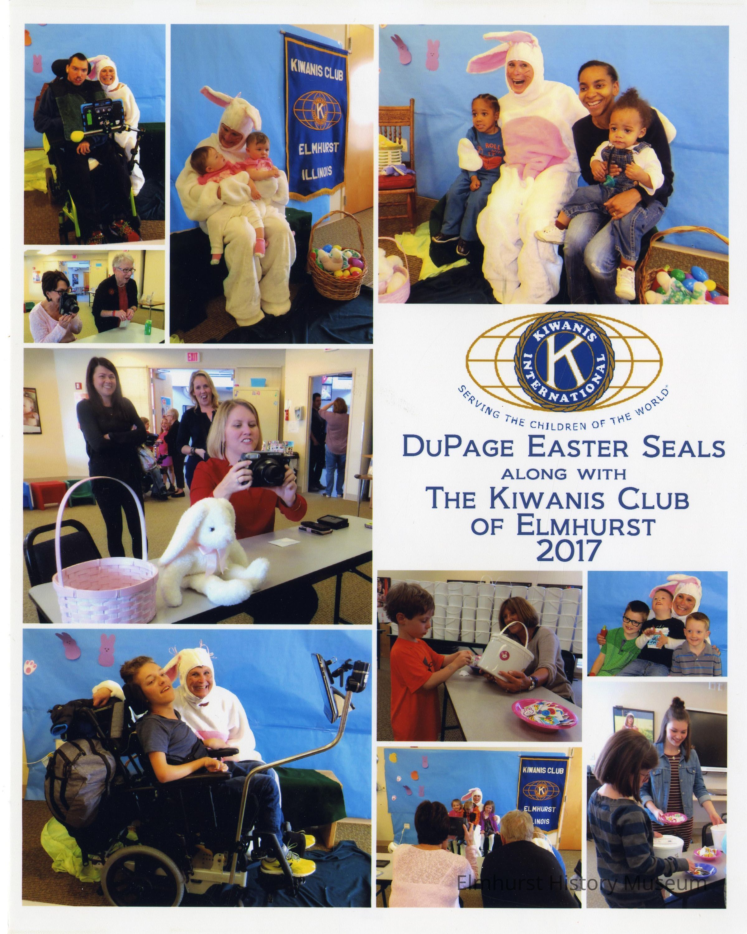 Collage of photographs from a Kiwanis Club of Elmhurst Easter event with the DuPage Easter Seals