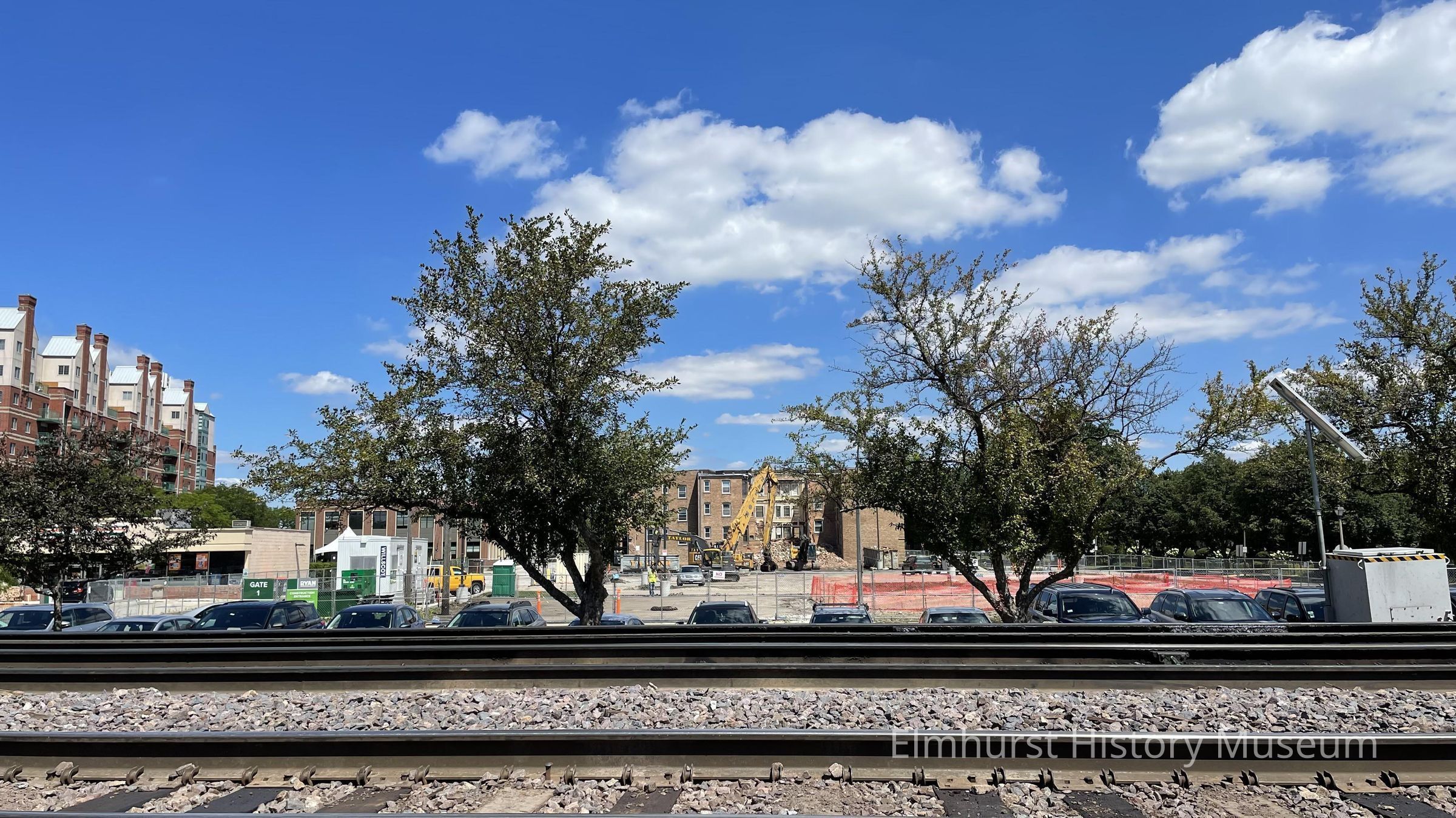 Demolition of the apartment complex at 130-138 Haven Road, looking north from the railroad tracks along E. First Street.Photograph Details