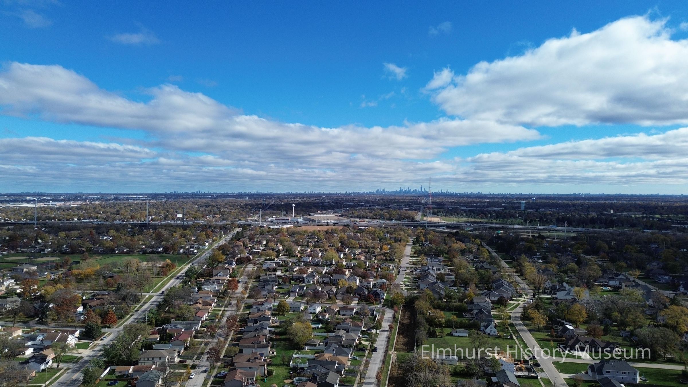 Aerial View of the Yorkfield neighborhood to the south of Butterfield road, looking east from York Street.