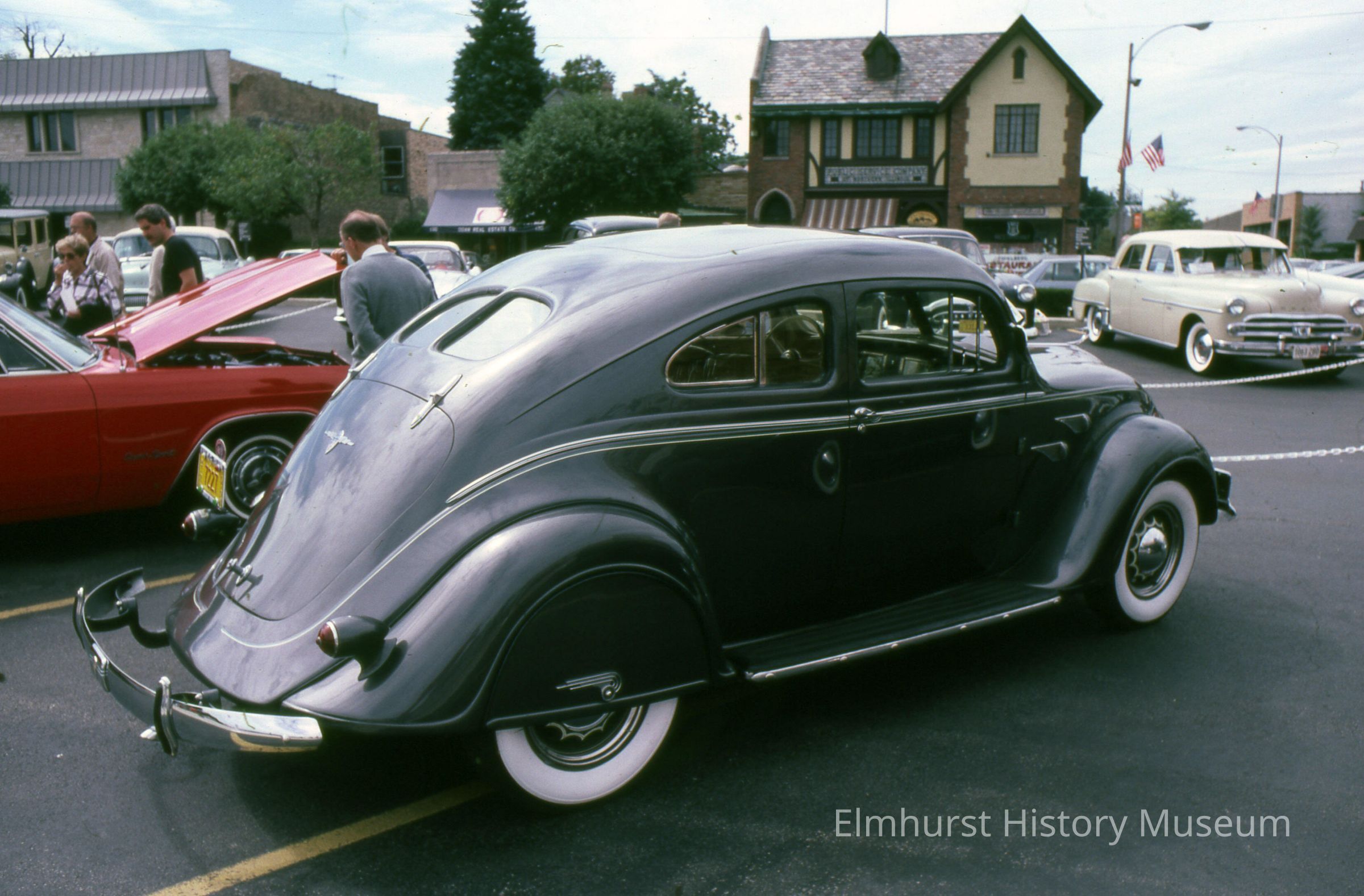 An antique car show on the grounds of Illinois Marine Bank, 105 S. York Street, during a celebration of Elmhurst's Sesquicentennial.