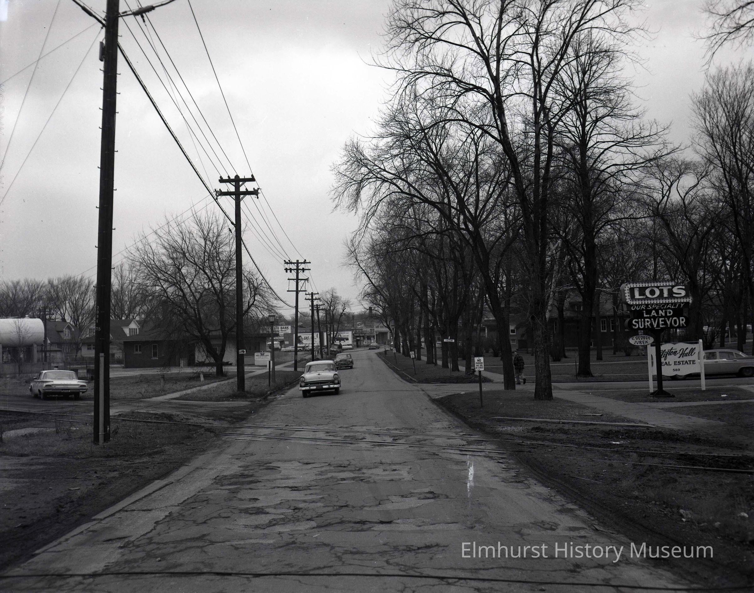The IC railroad crossing at S. York Street, looking north towards Crescent Avenue.