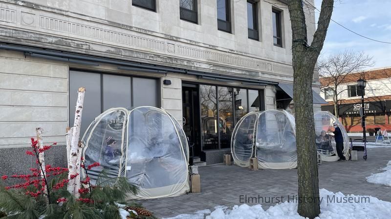 Diners in outdoor bubbles at Stray Hen Café at 105 S. York Street. Indoor dining was closed at the time due to the Covid-19 pandemic.