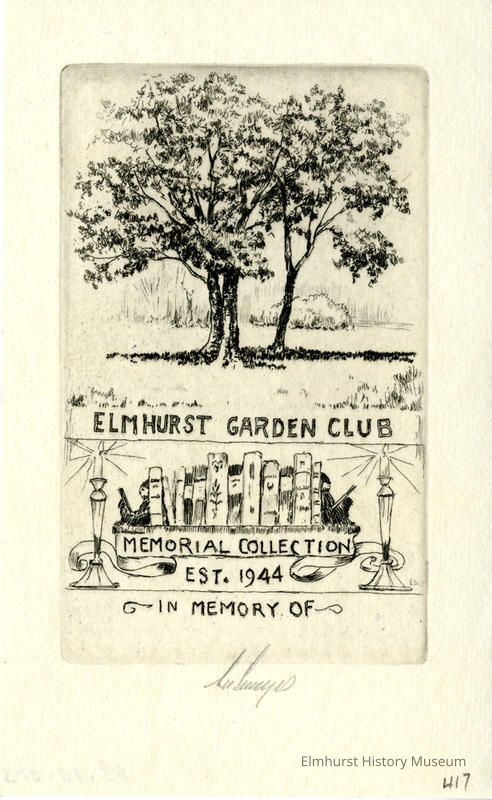 Etching: Trees in upper half, candles and books in lower half with inscription. Signed and dated.