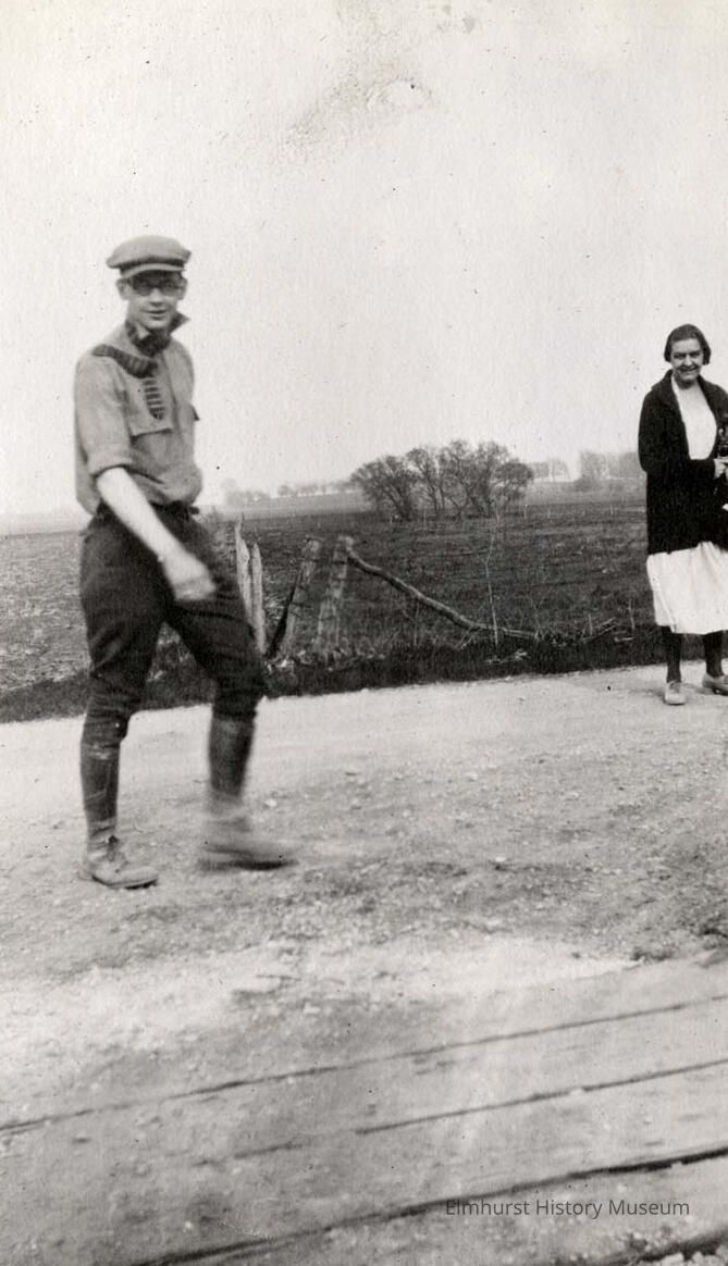 Young people pose for a photo on unpaved North Avenue, near the bridge over Salt Creek.