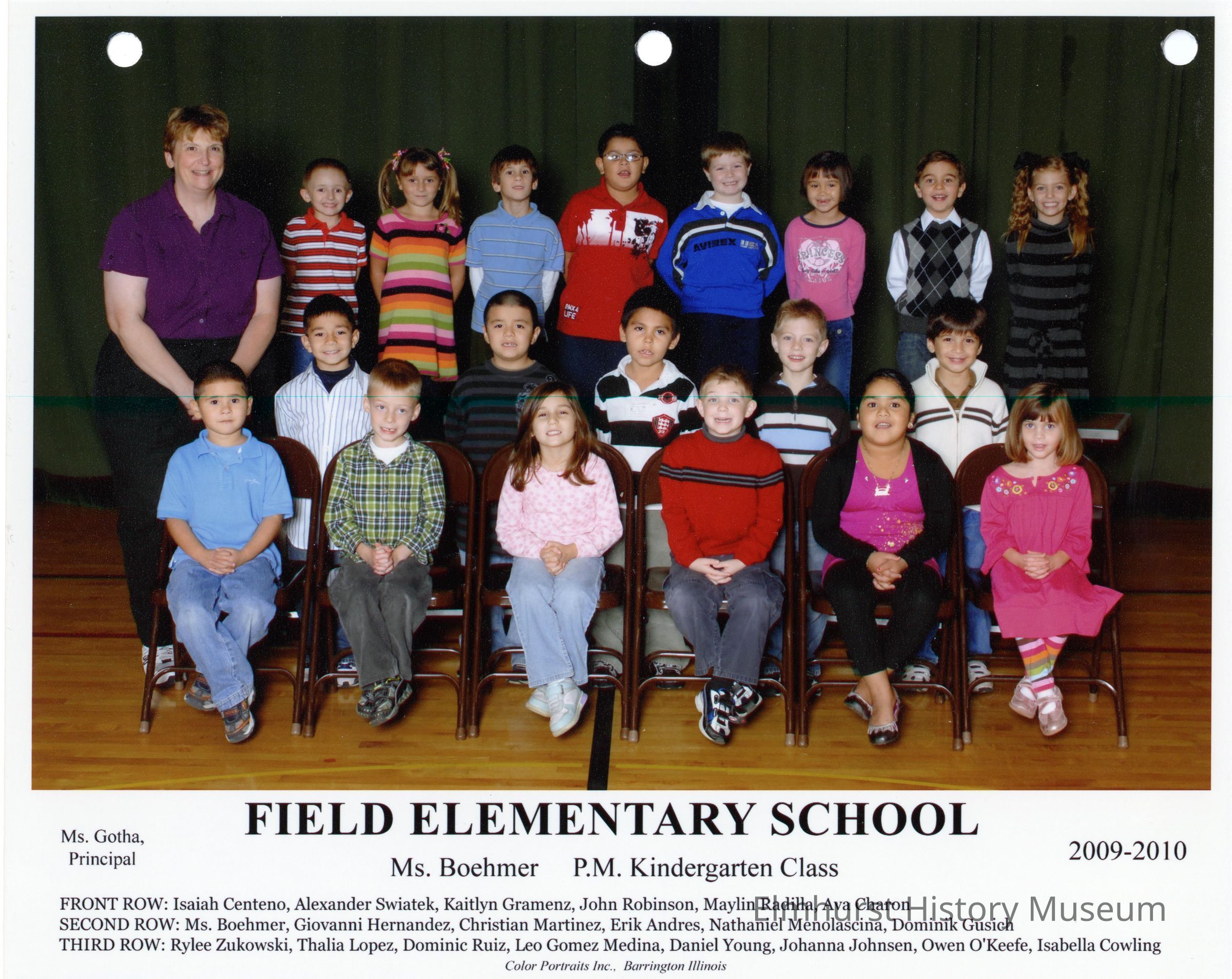 Kindergarten P.M. class photograph from Field Elementary School, under teacher Ms.Boehmer.