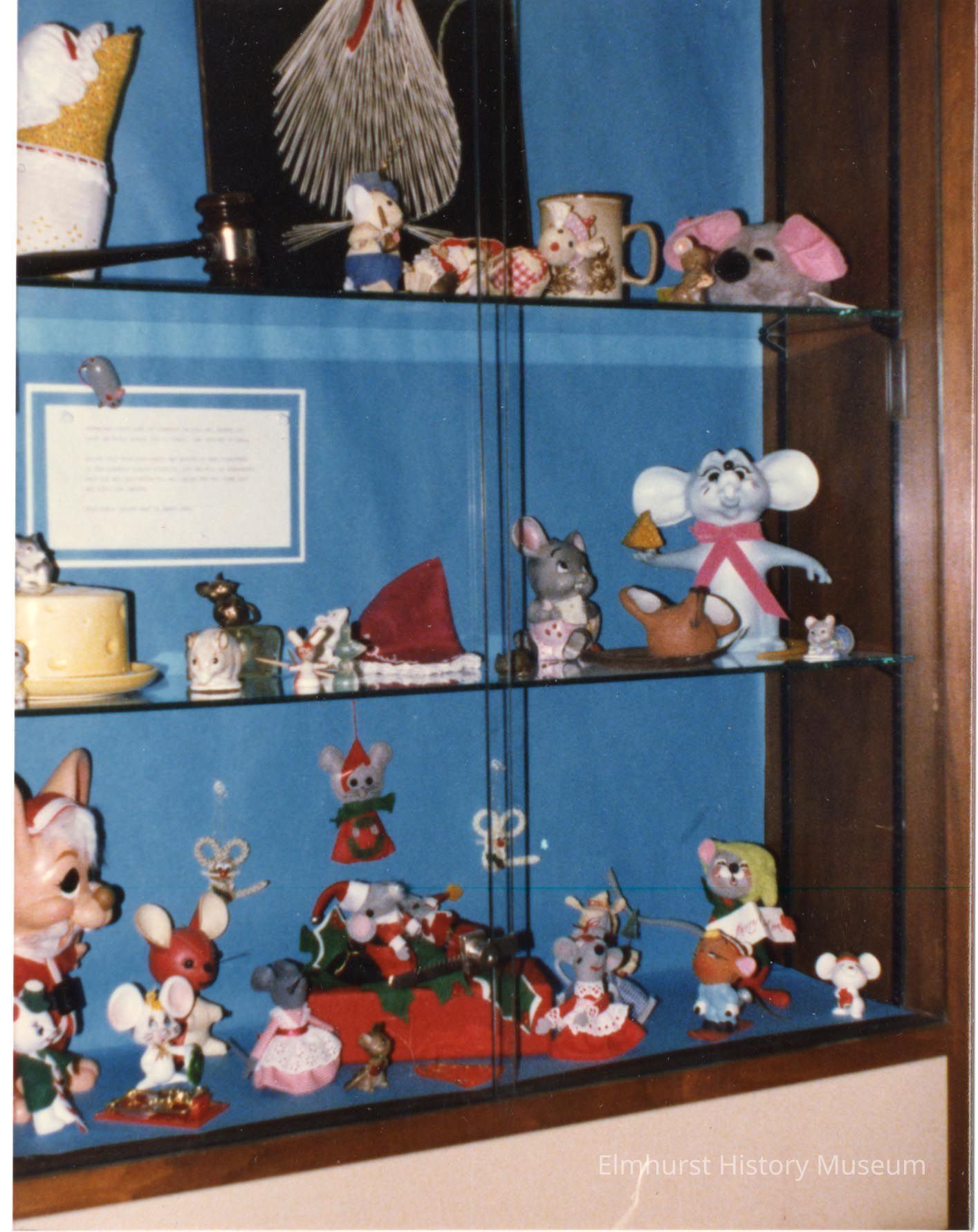 Display honoring former teacher Audra Pence, who taught at Field School for 43 years before retiring in 1984 and passing away in March 1986. Her family donated her "Field Mouse" collection to the school, which displayed the collection for several years.