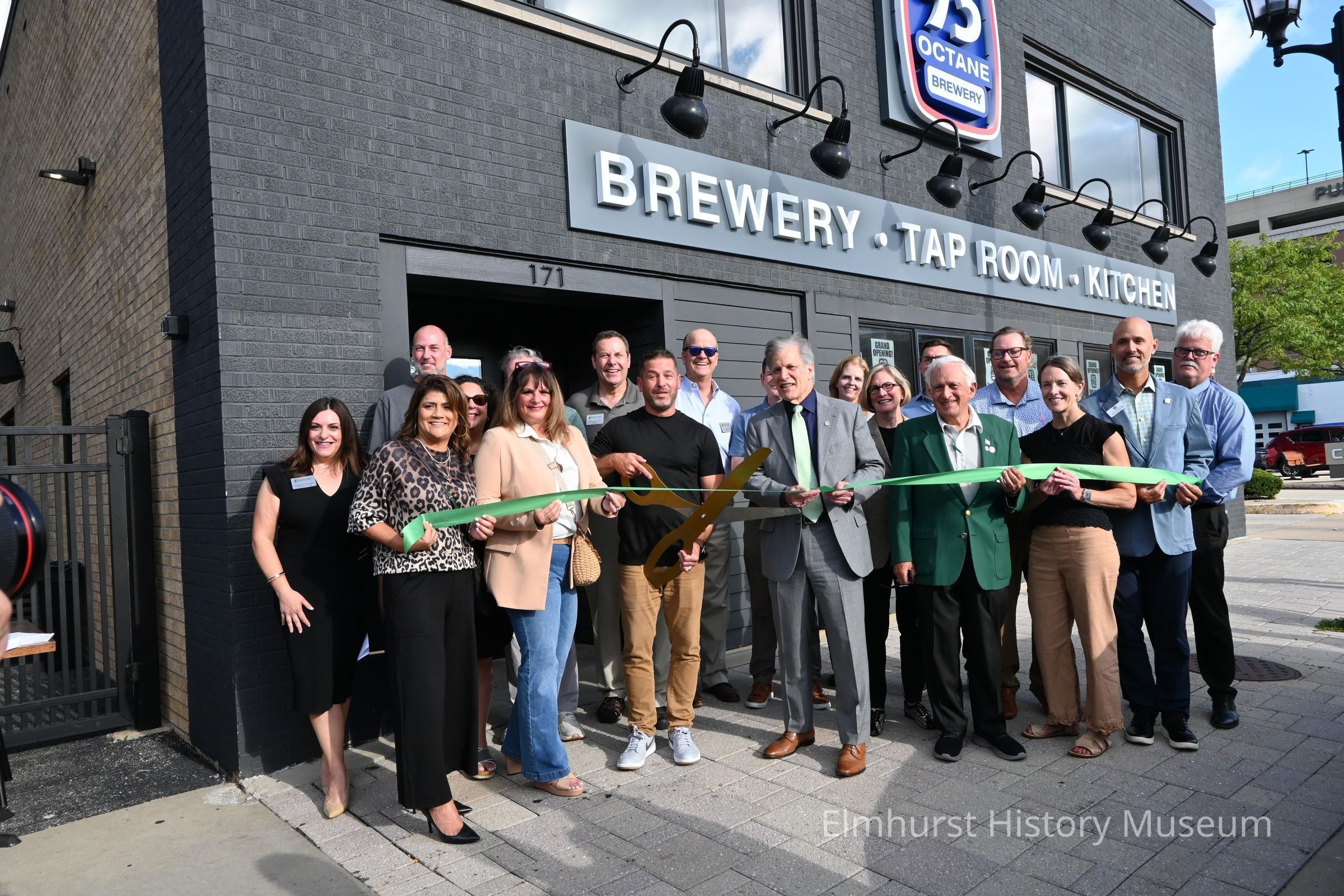 City officials and business stakeholders partake in the ribbon cutting ceremony at the grand opening of 93 Octane Brewery at 171 N. Addison Avenue.Photograph Details