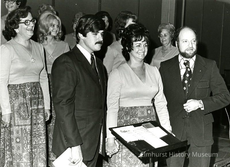 Lee Daniels and Abner Ganet with members of the Elmhurst Evening Woman's Club at a presentation
