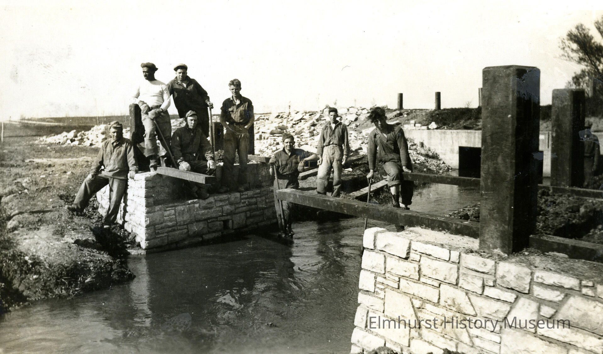 Civilian Conservation Corps Camp Elmhurst Group with Partially-Build Bridge