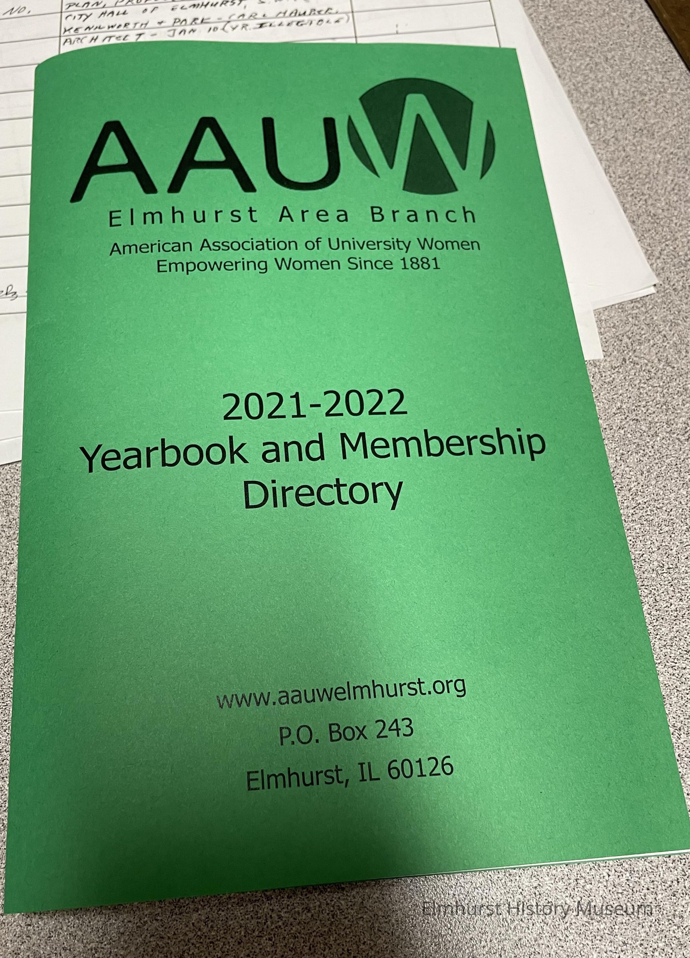 AAUW Elmhurst Branch Yearbook and Membership Directory 2021-22Entry/Object ID