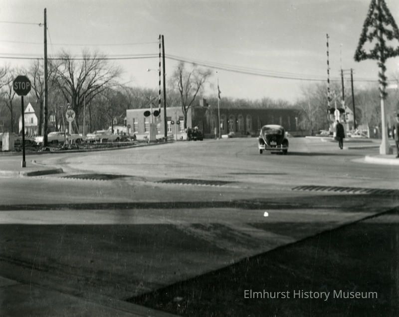 Newly completed Addison Avenue and Cottage Hill Avenue railroad crossing. Taken from Southwest corner of Addison Avenue and W. First Street.Photograph Details