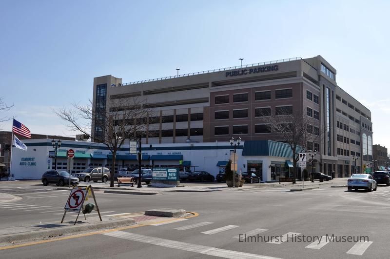 Elmhurst Auto Clinic at N. Addison and Second Streets, looking south towards the Addison Parking Deck.Photograph Details