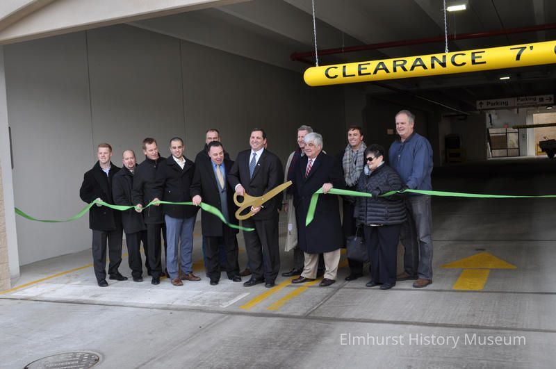 Elmhurst Mayor Steve Morley and other elected city officials gather to cut the ribbon at the opening ceremony for the Addison Avenue Parking Deck.Photograph Details