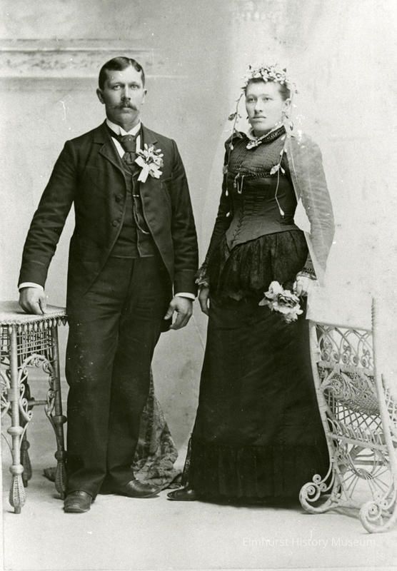 The wedding portrait for Adolph and Anna Scharnhorst Brackmann, who were married September 14, 1892 in Bloomingdale.Photograph Details