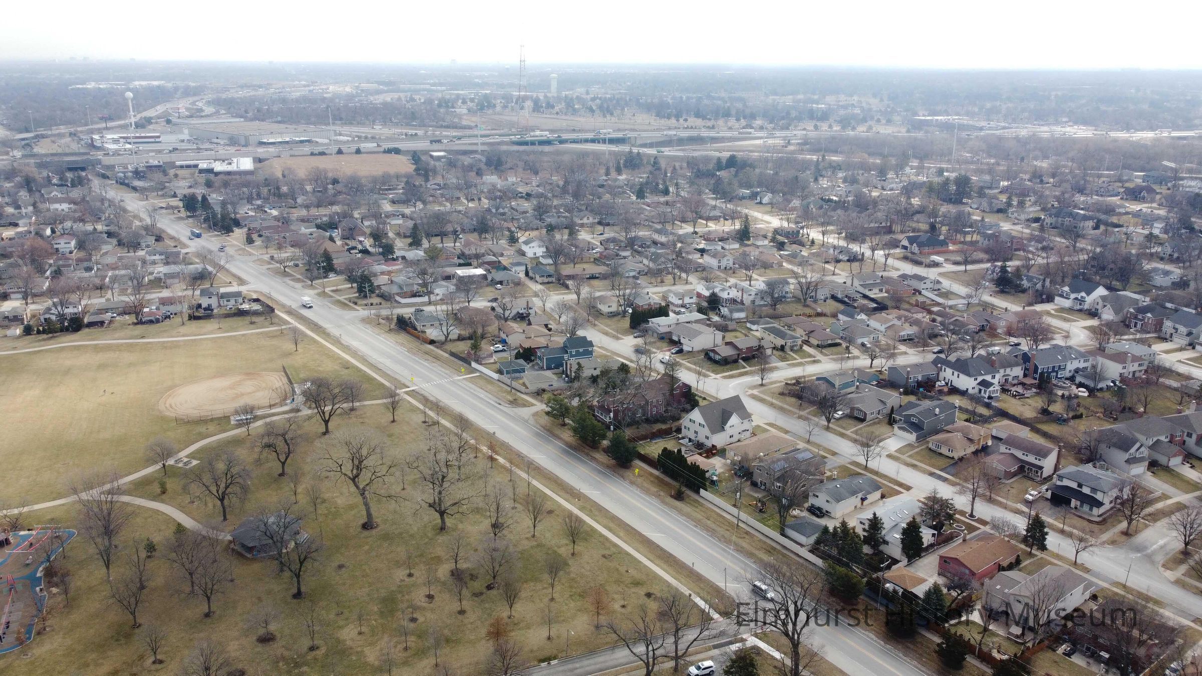 Aerial view of Butterfield Road, looking east towards Interstate 294. Butterfield Park is in the foreground at left.Photograph Details