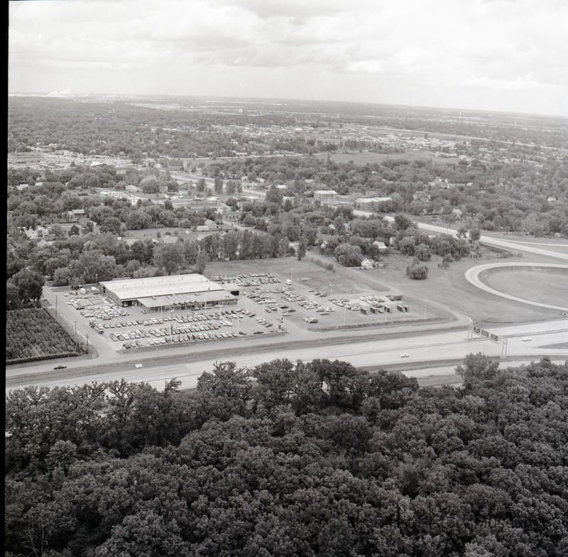 Aerial View of Celozzi Ettleson Chevrolet car dealership, looking north from Route 38 towards Yorkfield.Photograph Details